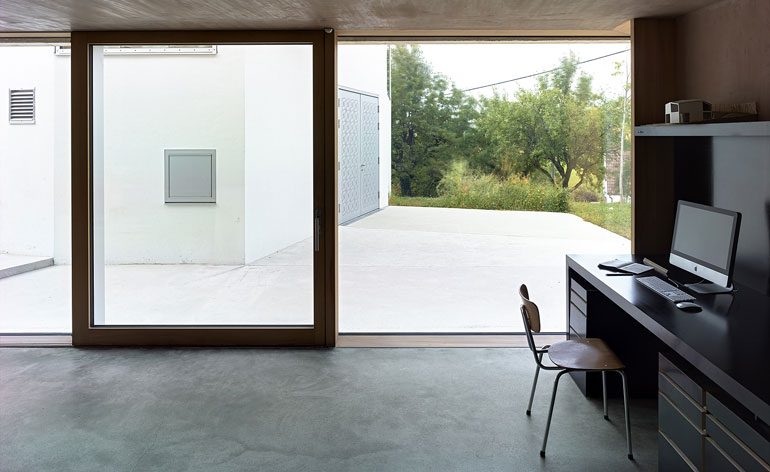 Refined and robust at the same time, the house takes its shape directly from its floor plan. Externally, the building seems to twist irregularly, but the architect's intention was to break away from the usual square shape and simply follow the most favourable volume for energy efficiency. 'A sphere is the best form in terms of volume, as there are very few surfaces where the energy is being lost,' says Lux