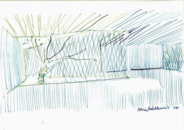 The architects' brief was for a pavilion that 'would have real contact with nature,' says Paul Robbrecht. They were asked to create 'a place where smaller or fragile works of art could be shown, or works that needed a more framed setting'