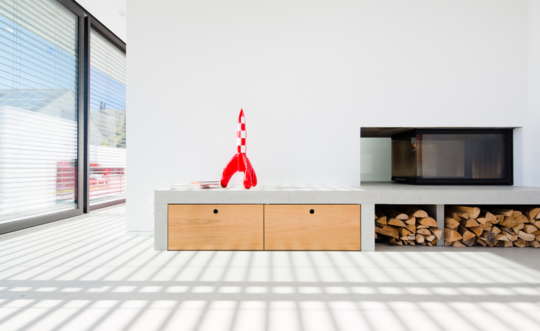 Philipp's clever solution revolves around defining the family home's floorplan arrangement based on three 'lines' - a tree line, a water line and an art line