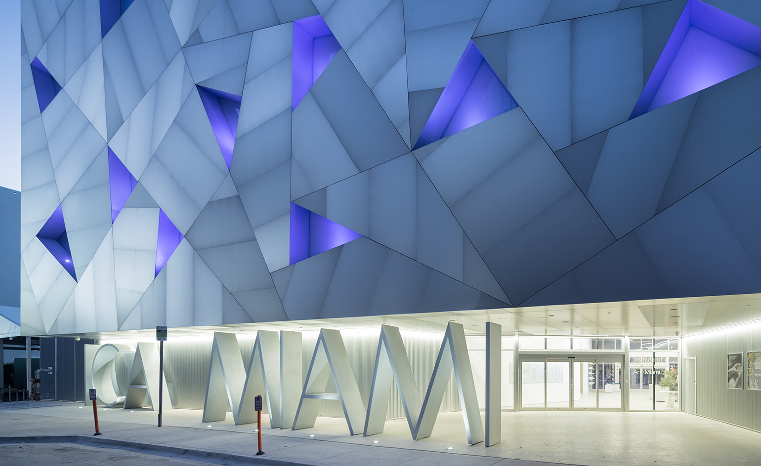The light and airy building is a constellation of metal triangles and glass panels Courtesy of ICA Miami