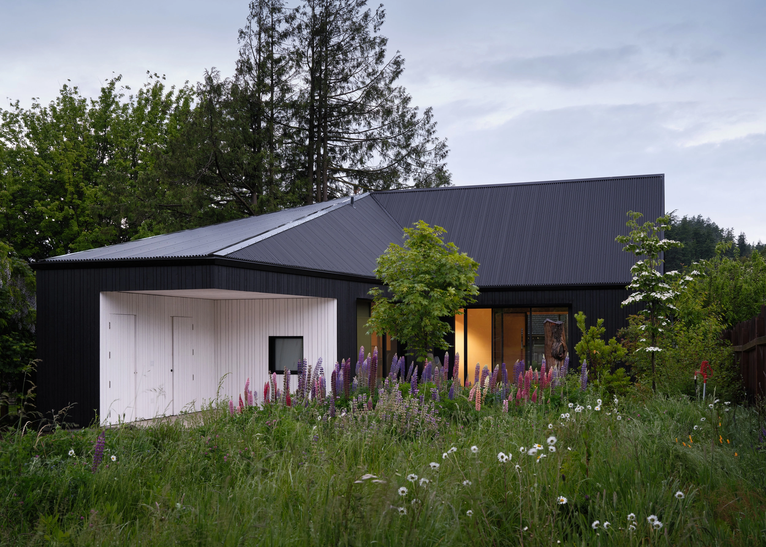 The aesthetic is stark and simple, reflecting the hard-wearing structures found elsewhere in the island. Ebony-stained cedar boards are paired with corrugated steel roofing, also black, with an interior characterised by gallery-level minimalism; white walls, high ceiling and a polished concrete floor throughout the studio and residence.