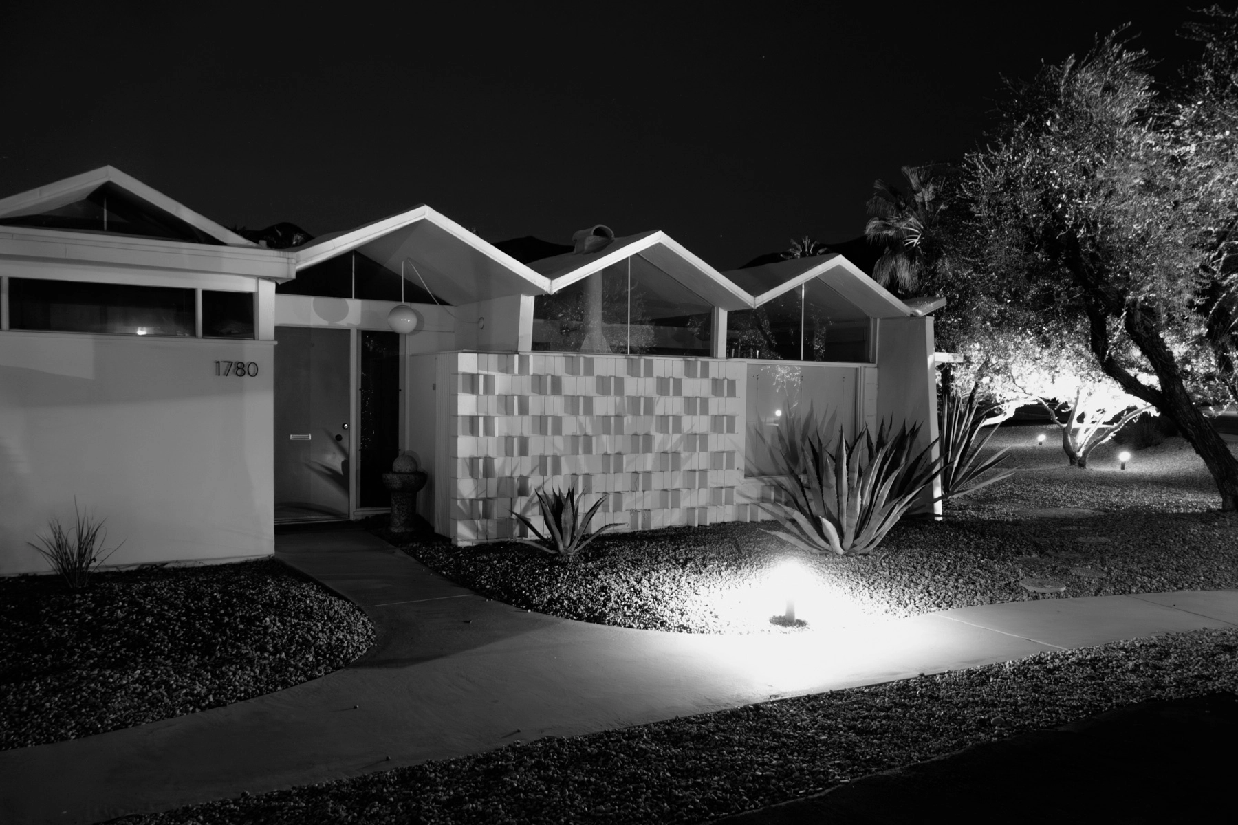 TB: The light in Palm Springs is beautiful, but I think a lot of people forget that the night is a variation of that beauty. Palm Springs has a dark-sky policy that keeps light pollution to a minimum. The stars, moon, mountains, trees, and minimal man-made light give Palm Springs a special texture and depth at night. I think the illumination of the classic modernist lines of the architecture against that texture and depth is quite striking. Most architectural photography is done in daylight; people forget that the architecture also lives at night. The shadows and contrast of illumination and darkness give the lines and form of structures a distinct and enhanced quality not seen in the sun.