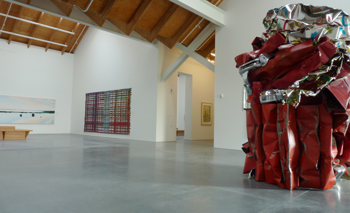 Taking centre stage is, of course, the art, with three times the exhibition space of the previous museum. Pictured, far right, is 'Tambourinefrappe' by John Chamberlain, 2010.