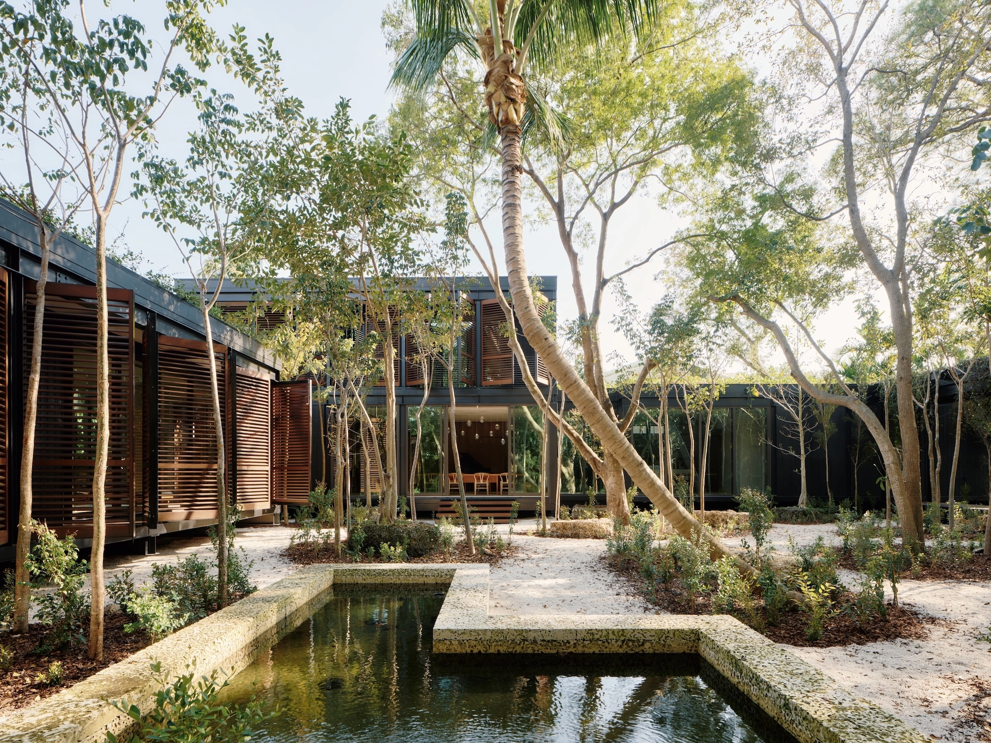 At first, Theodore imagined a single steel-and-glass structure at the centre of the site. But realizing that such a scheme would require removing dozens of trees, he and the architects shifted course. ‘We wanted to be immersed in the beauty of the land,’ says Theodore, ‘which, despite being in the middle of Miami, contains over 200 mature trees, 600 saplings and too many plants to count.’
