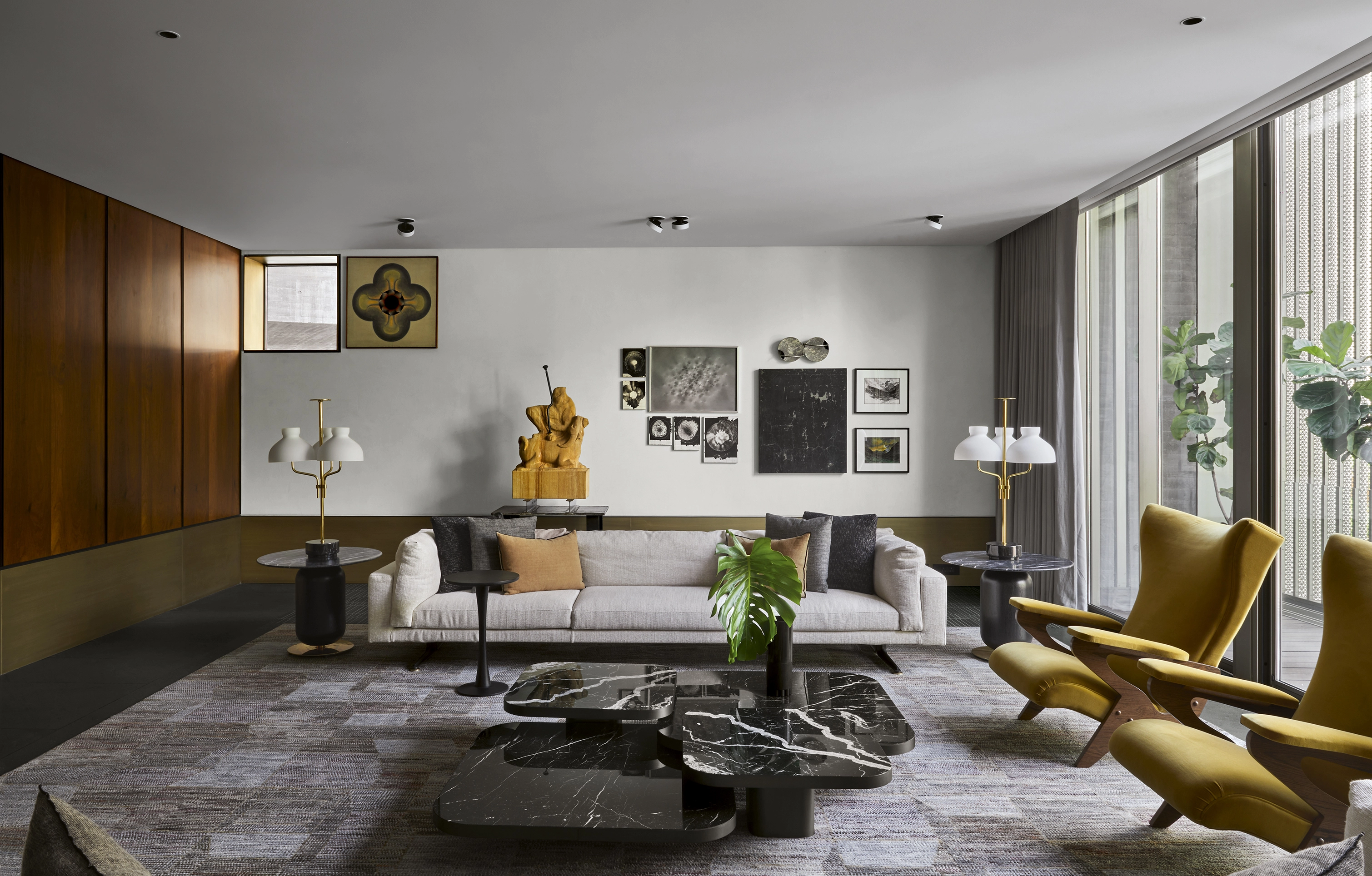 Having worked together since the 1990s on homes in Delhi, Udaipur, Singapore and London, the design-client team had an established, strong and fruitful relationship of trust and collaboration. Space to breathe and varying levels of privacy were both important in the new design – all wrapped in the refined, contemporary design that is a key signature in Saini's work. ‘Having been friends for over 25 years meant we were really able to discuss and share with complete frankness, our views and ideas, on every aspect of the project,' he recalls. ‘It was about pairing disparate materials together, and creating drama... and then there is the art!'
