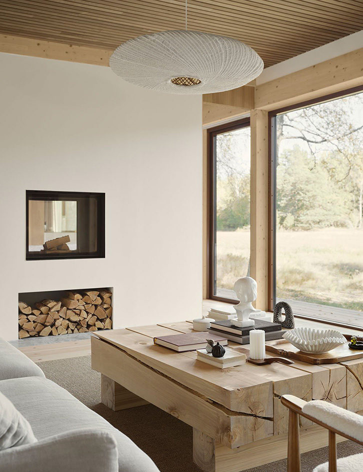 'The house is made entirely of wood with seven different types of pine in its framework,' He explains. 'The supporting glulam beams are made of pine, the exterior walls consist of pine rules, insulation of wood fiber, windshield in pine plywood and a thermo-pine façade panel. The window frames are in solid pine treated with a teak glaze and the wooden deck is in heart-pine.'