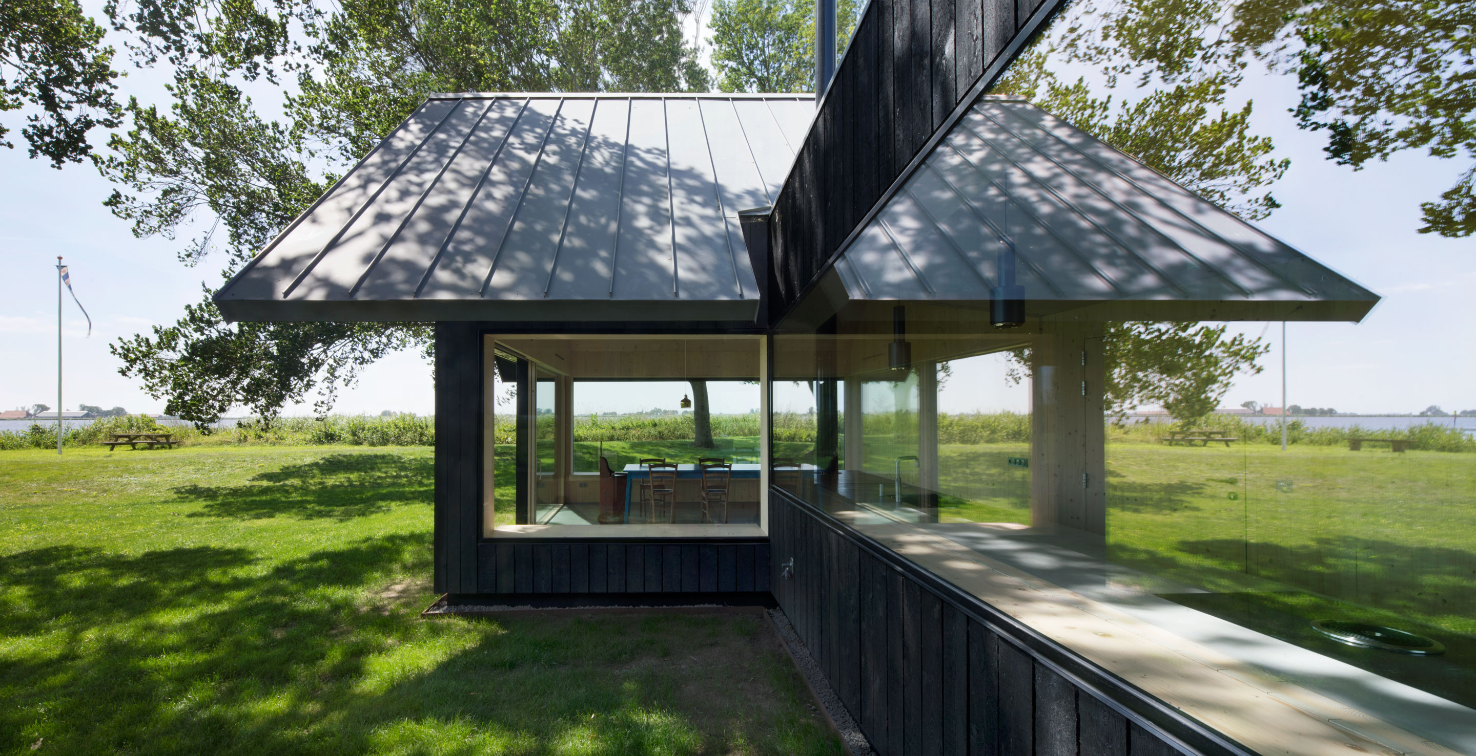 Back in the studio, the architects played around with models of the volumes they required, to reach the exact positioning of the low-lying forms that create visual connections to the lake, a village, a far off windmill and a church tower.