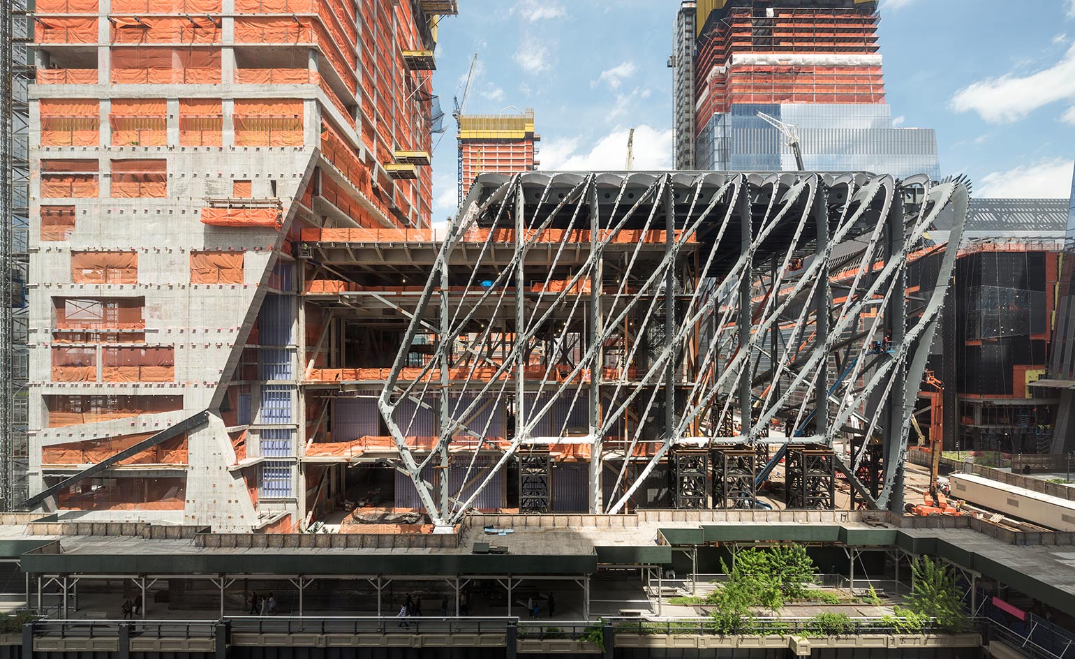 If you happen to find yourself staring at New York’s Dubai-esque Hudson Yards development any time soon, you’ll certainly notice a skeletal structure whose sharp, welded steel frame resembles a giant colander or some kind of space-age torture device. If you look a little closer, you’ll see the whole thing is resting on giant steel rollers.