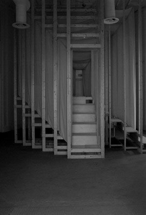 AGA and Ensamble's Hemeroscopium House is one of the most audaciously self-promoting residences built in recent times, a composition of concrete, steel and an artfully placed boulder. Their Biennale installation recreates the house's dramatic structural ploys, threading two vast beams through the columns of the Arsenale. More of a theatre set than a piece of real engineering art, it still conveys a powerful presence.