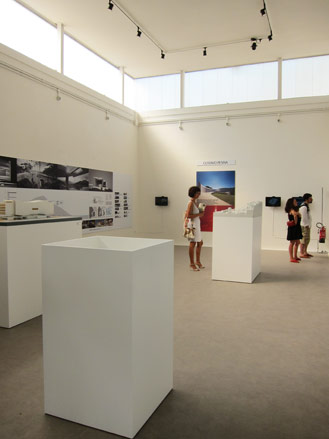 Chilean stars Pezo von Ellrichshausen Architects are showing off their simple yet utterly beguiling Fosc House and Poli House using models, a stick and wall-sized photographs. Not quite as good as perching on the edge of the raggedly beautiful South Pacific coast, but as close as you'll get in the stifling heat of the Giardini.