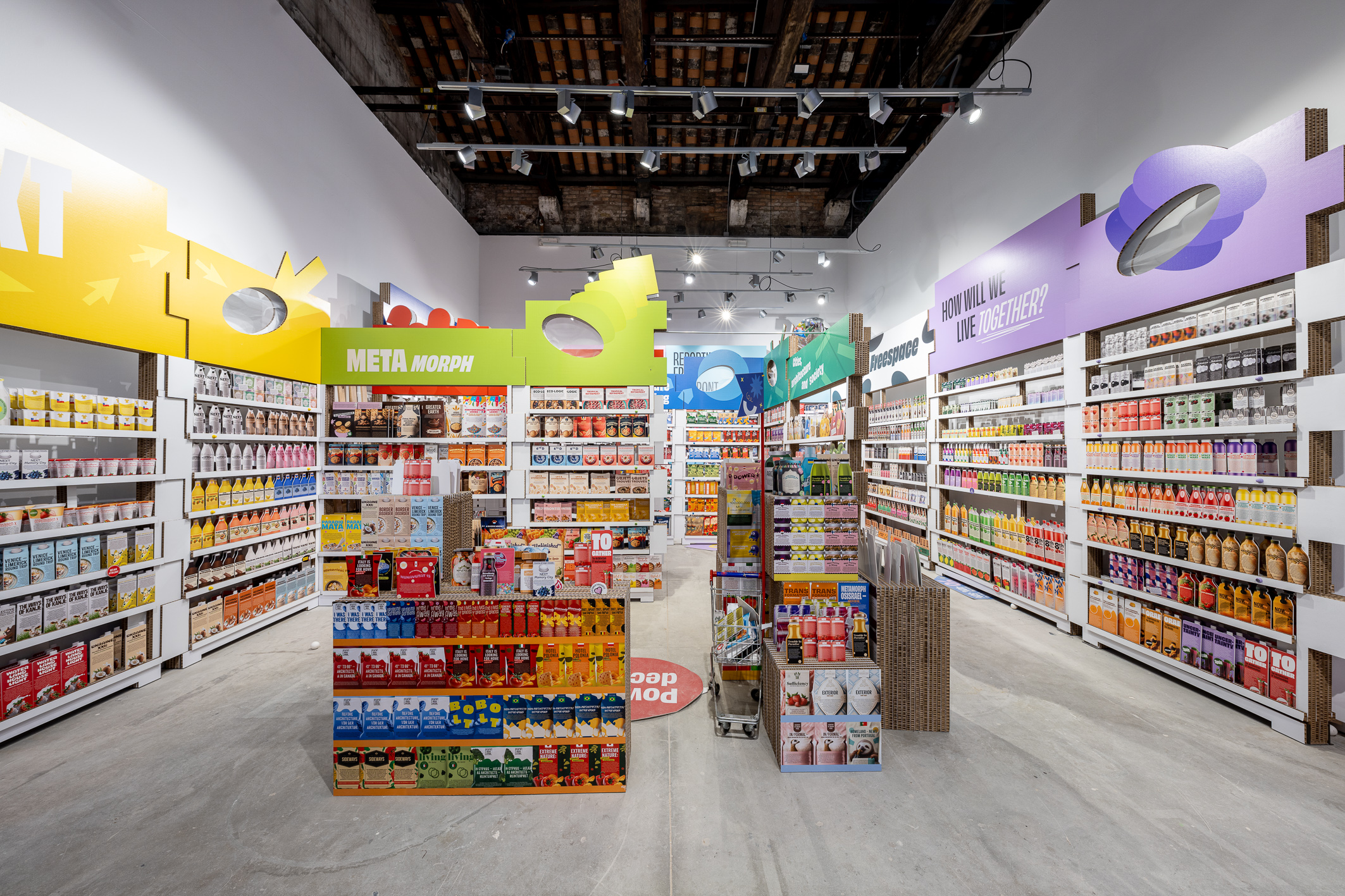 The pavilion of Latvia, located in the Arsenale halls, looks like a supermarket - yet instead of products, its shelves are filled with AI-produced representations of themes and ideas of past biennales. The display is curated by Uldis Jaunzems-Pētersons, and it was designed by Ernests Cerbulis, Ints Menģelis, Toms Kampars, and Karola Rubene. Fun, colourful and thought-provoking, it offers a tongue-in-cheek moment to the Arsenale sequence - and the visitors can interact with it too, by throwing a ball that knocked over items.