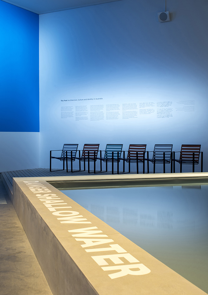 The installation, consisting of a full scale paddling pool, was conceived by Aileen Sage Architects' Amelia Holliday and Isabelle Toland, with Michelle Tabet.