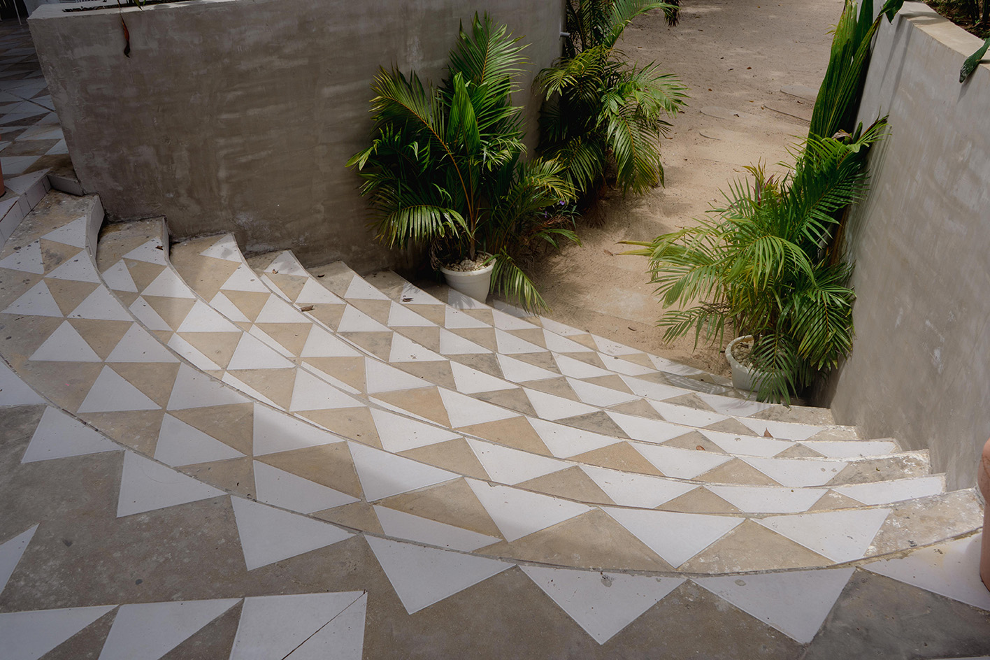 The architect’s latest project is the Caïa beach club in Assinie, a coastal resort town an hour and a half from the Ivorian capital. ‘The challenge here was to create a structure that can endure time. For that reason we had to resort to concrete,’ she explains. She made the material relevant to the specific context by moulding it into an airy building that bends and curves, to allow hypothetical trees latch on to it. Bringing local craftsmanship into the project, she commissioned floor tiles that mimic the traditional Kente cloth and serve as the design’s unique ‘identity card’.