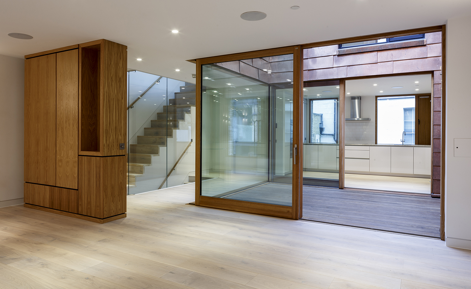 Bordered by the tall Georgian houses of Gloucester Place, and only a stone’s throw from Baker Street, the Rodmarton Street development is a small series of high-end sustainable homes consisting of two two-bedroom maisonettes, one 3-bedroom townhouse, a single one-bedroom flat and two garages. The site's restricted natural light was one of the project's key challenges. This problem was cleverly solved with the addition of external and internal courtyards, casting plenty of sunshine deep into the centre of each home.