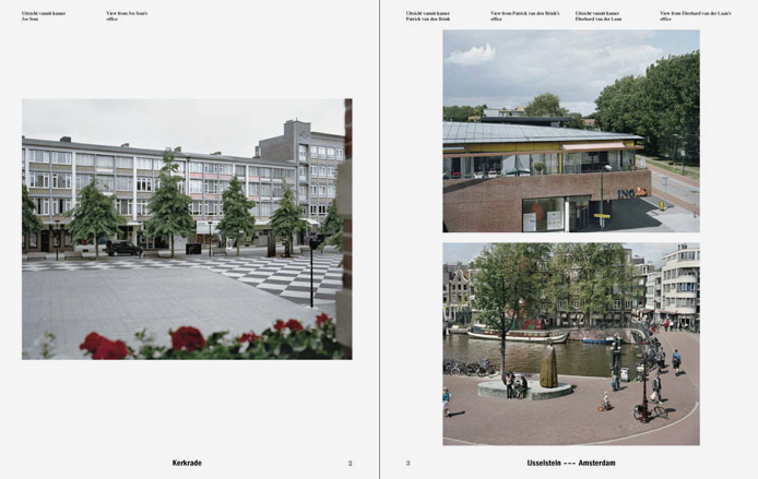 Spread from ’The Mayor’ detailing the various views from the offices of mayors, including (clockwise from left) Jos Som, Patrick van den Brink and Eberhard van der Laan
