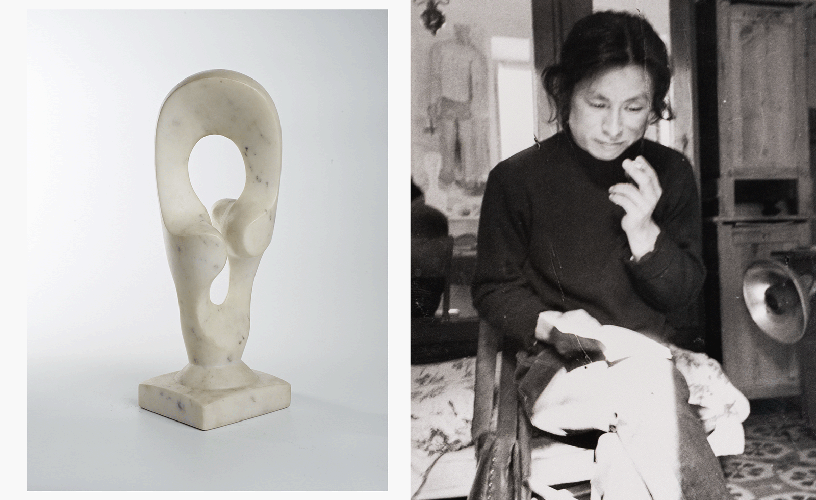 The correspondence is moving in its tracing of Umeda’s development as an artist, something that takes shape in the marble sculpture Spirality, 1977, which resides at Kettle’s Yard. ‘It is telling that he elected to send a work from this time to his “master” Jim Ede, then living in Edinburgh, and it is also telling that Ede felt the sculpture belonged to Kettle’s Yard and placed it there,’ says Fraser. ‘Umeda asked Ede to write a text for his exhibition catalogue, and the two pages of Ede’s notes for the text feature in our display. The correspondence between Umeda and Ede continued for many years, but I think it was most important for the artist during the period in which he was learning to be a sculptor, and Spirality was given in gratitude for Ede’s guidance.’