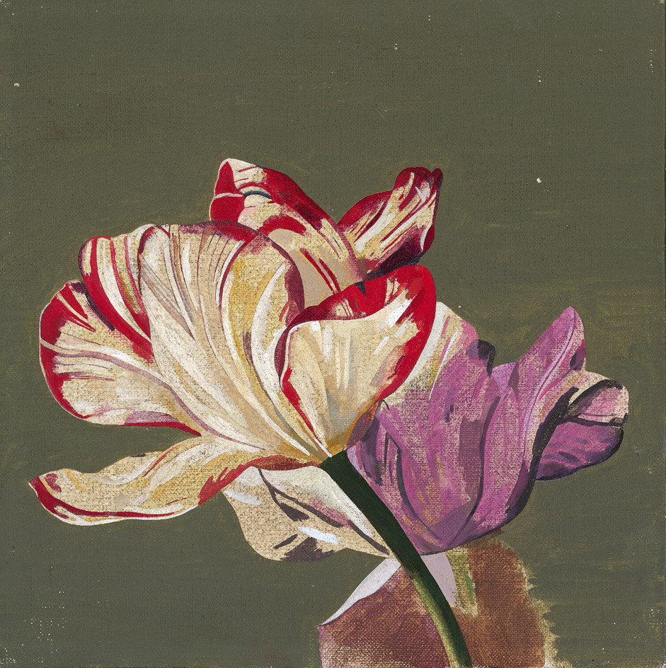 Tulips after Van Brussel, Flowers in a vase, by Sir Peter Blake, 1995-96, in the Warwick cabinet