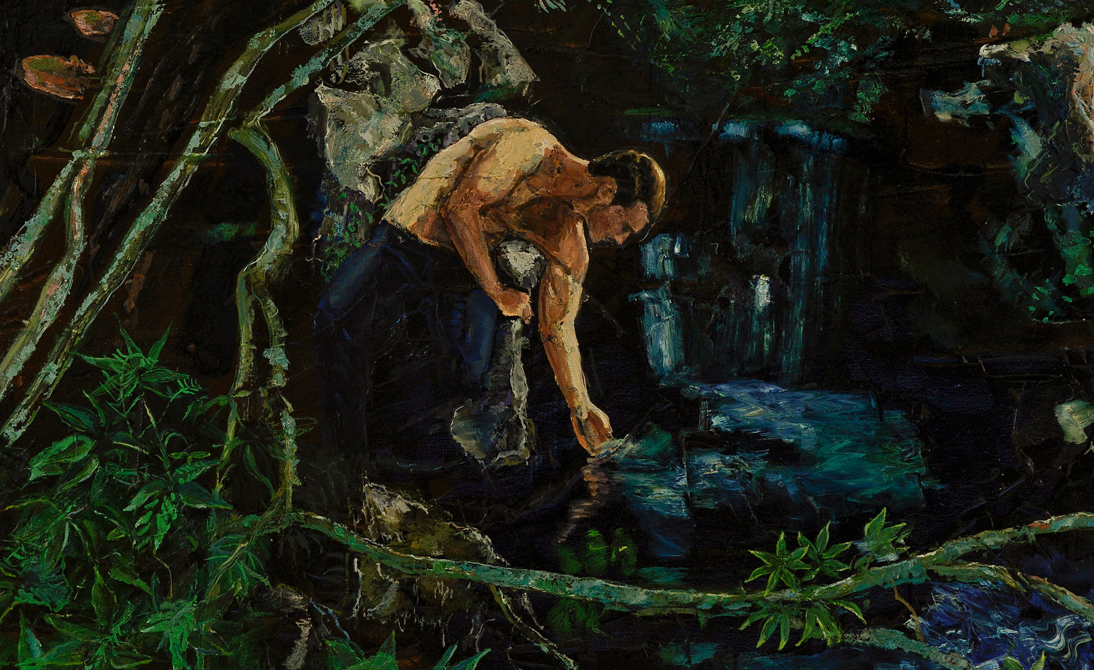 For an artist who now splits her time between dense urban areas – Rome and New York – her work might seem surprisingly Arcadian. But even though her paintings evoke some kind of distant wilderness untouched by human hands, she finds the settings closer to home. With Garden in the Forest, for example, she painted her subject at the Pool, a small pond in Central Park just steps away from the busy Central Park West thoroughfare. For others in the collection, she painted in Rome’s Orto Botanico.