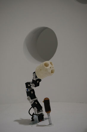 ’Ergo-Robots/Flowers Fields: Artificial Curiosity and Language’ - an interactive installation that sees a ’tribe’ of robotic figures emerging from an egg and then exploring their environment, learning new skills and communicating with their human visitors