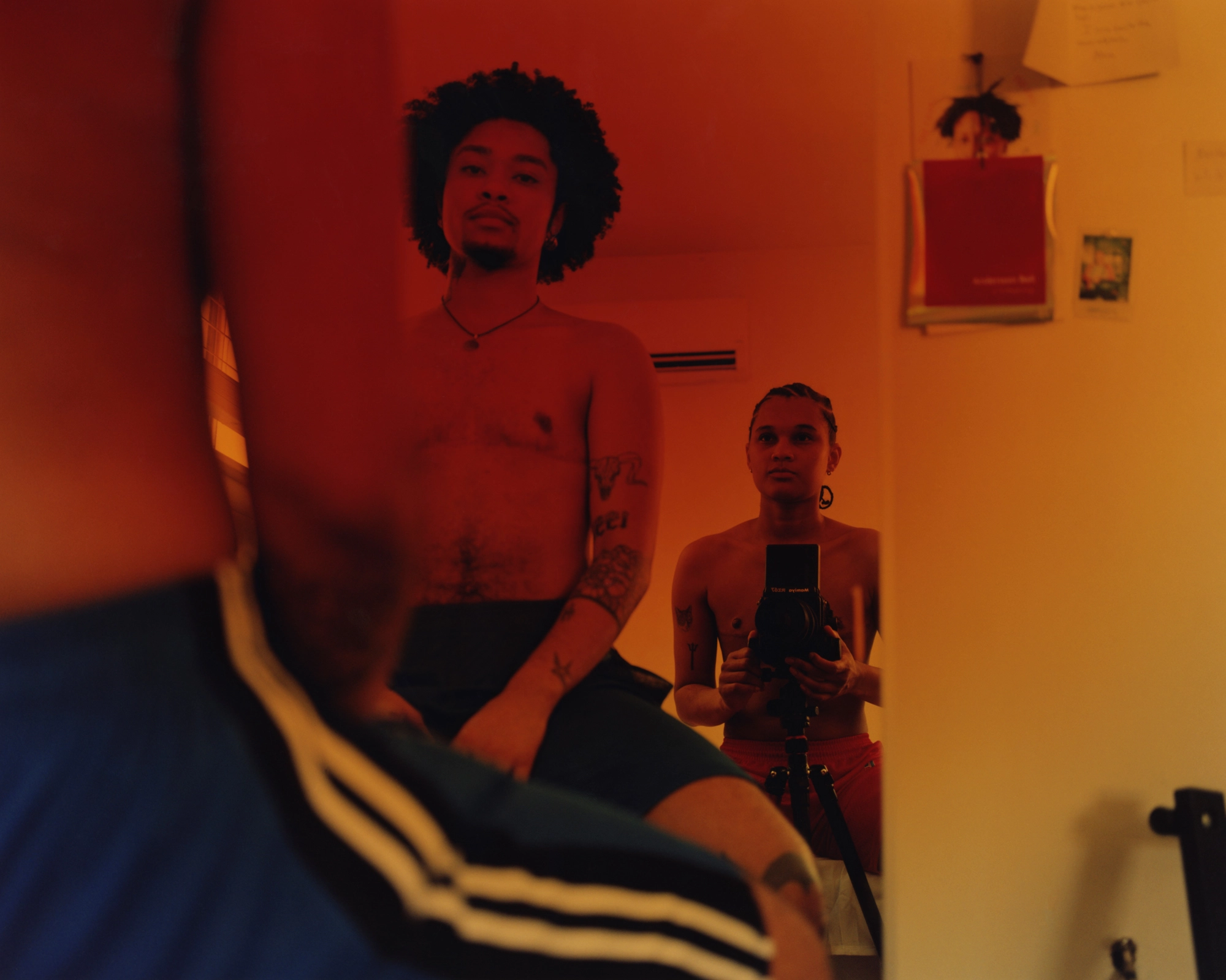That refusal of spectacle runs throughout the book. The images are calm and unforced, resisting the neutrality of the studio in favour of bedrooms and lived-in spaces. Healing, Perryman insists, happens at home. Subjects appear at ease and unguarded, and the camera stays close without intrusion. At moments, the act of photographing appears in a mirror or reflection, not as self-assertion but as an acknowledgement of presence. Authorship here is relational, with the photographer positioned inside the conditions of trust that make the work possible.