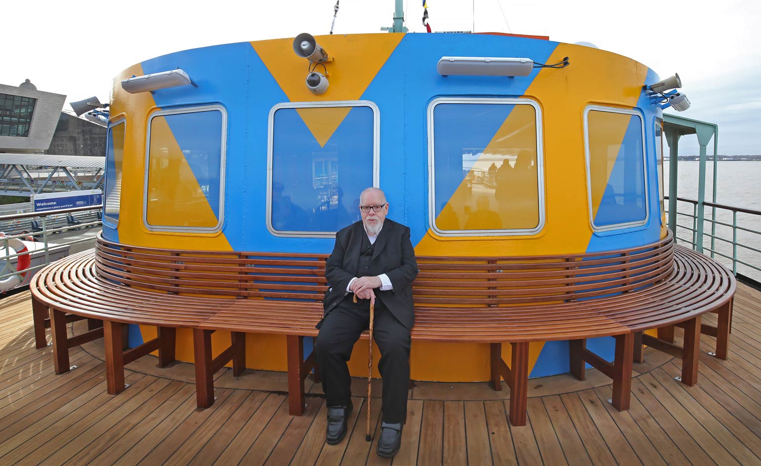Sir Peter Blake admiring the now iconic skyline of the famous port city and home of The Beatles