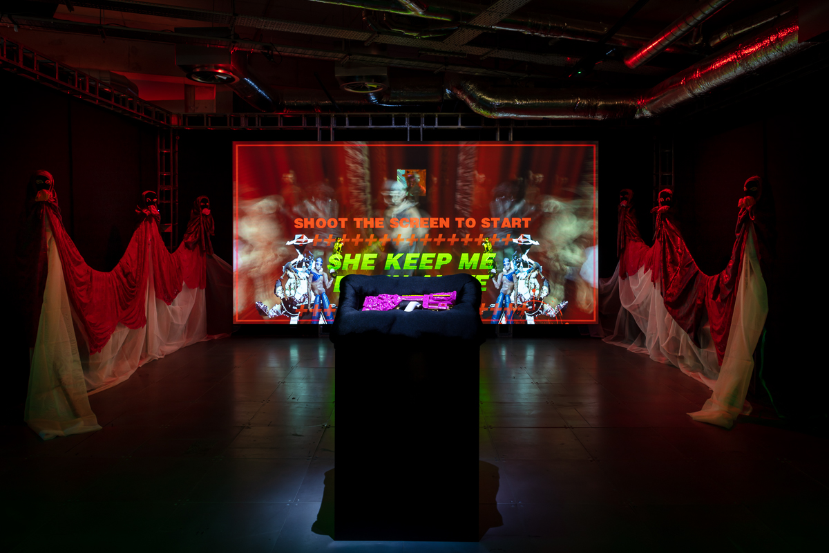 Danielle Brathwaite-Shirley, SHE KEEPS ME DAMN ALIVE, 2021, Unity-Game installation, infinite duration, color, sound. Installation view, Arebyte Gallery. Courtesy of the artist. Commissioned by Arebyte, London (2021). On loan from the artist and ZELDA