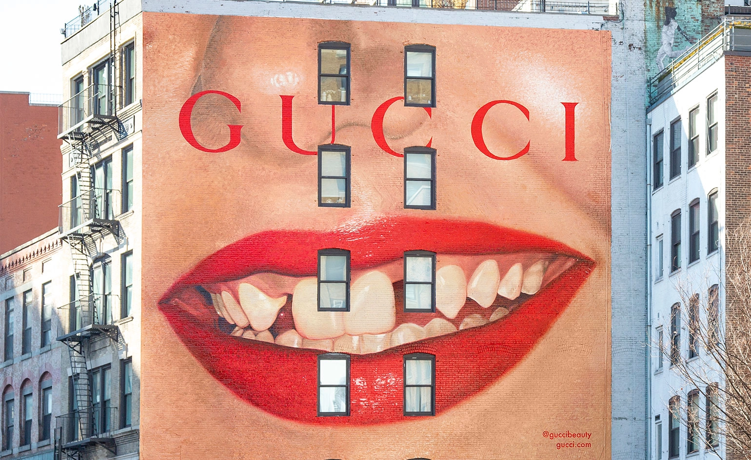 With slightly smudged lipstick and a snaggle toothed grin, ArtWalls proclaim the celebratory ethos of Gucci Beauty. Makeup, these lips say, should be used to express yourself, not perfect yourself. With a varied roster of lipsticks to their name, and more products to come, Gucci Beauty makes it fun to make yourself beautiful – whatever that means to you.