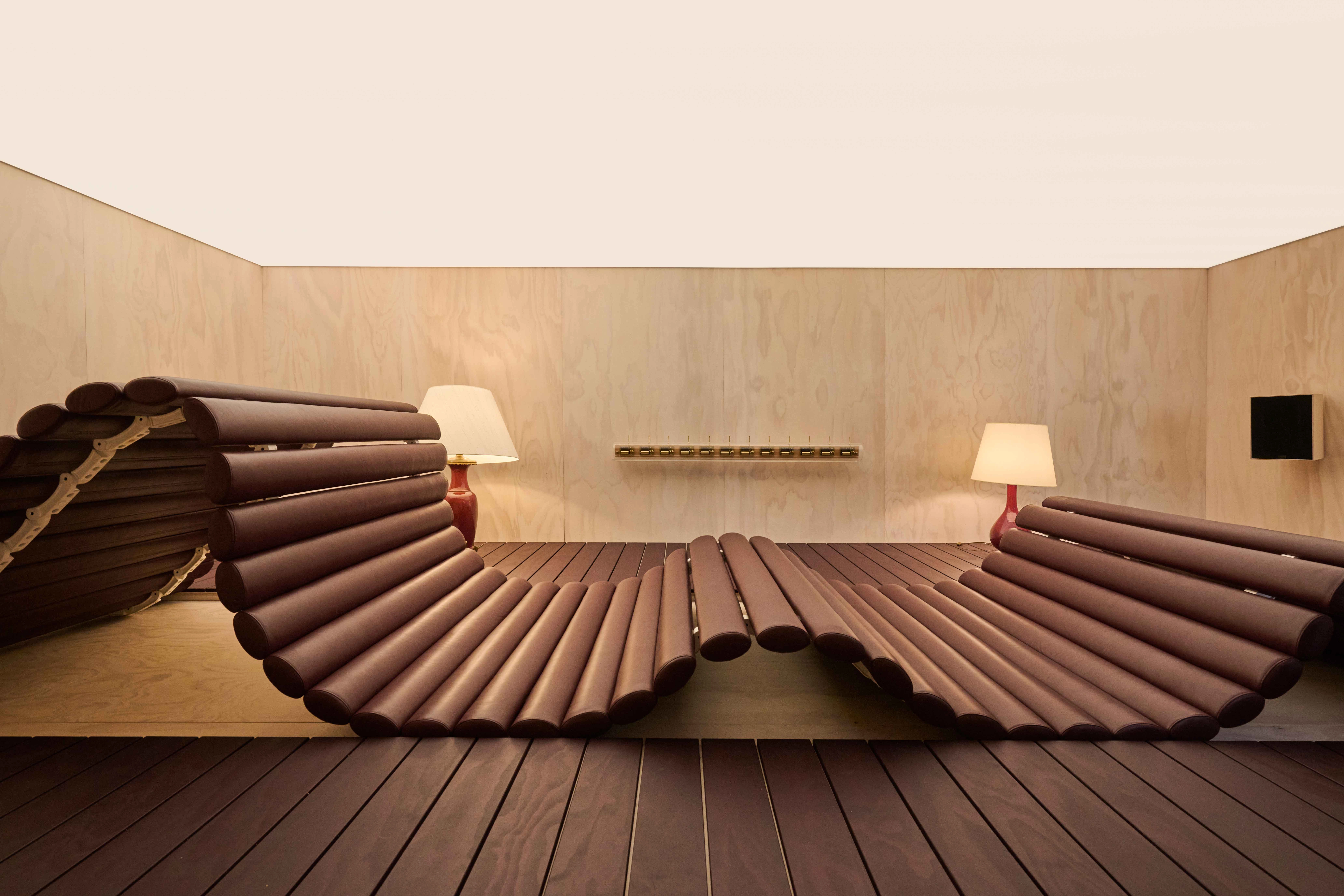 A modular seating concept designed by Pierre Paulin in 1966, ‘La Déclive’ 'embodies one of the designer’s most radical approaches: to eliminate traditional furniture in favour of a shifting, inhabitable floor'. The display is a living reflection of Paulin's vision for a design approach that revolutionises domestic arrangements, fusing architecture and furniture into a novel spatial experience.