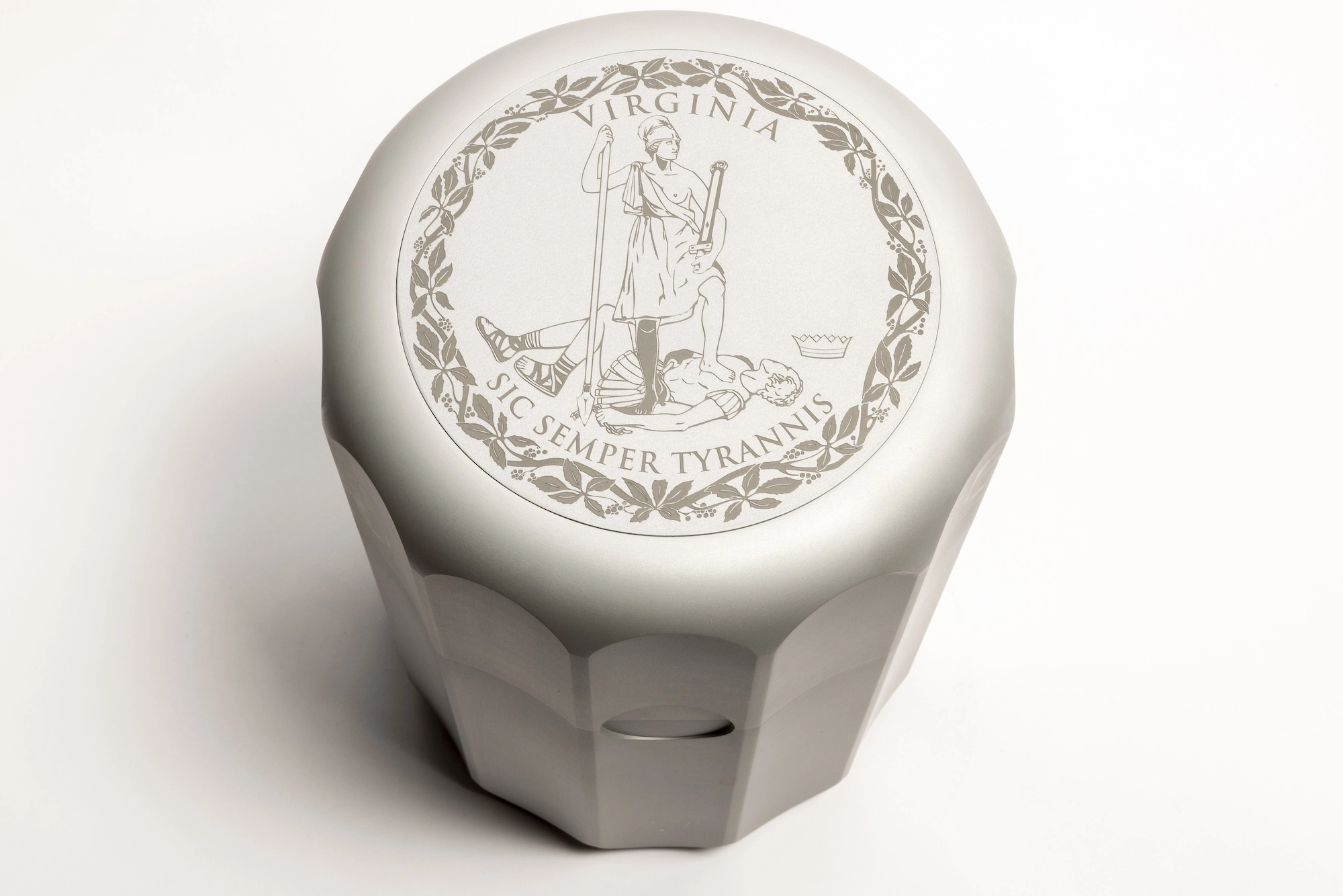 According to Foster + Partners, the capsules were CNC-machined from a solid piece of stainless steel. Its column-shaped design features 13 flutes that symbolise America’s 13 original colonies; the official state seal of Virginia; and a red closure featuring Washington's initials.