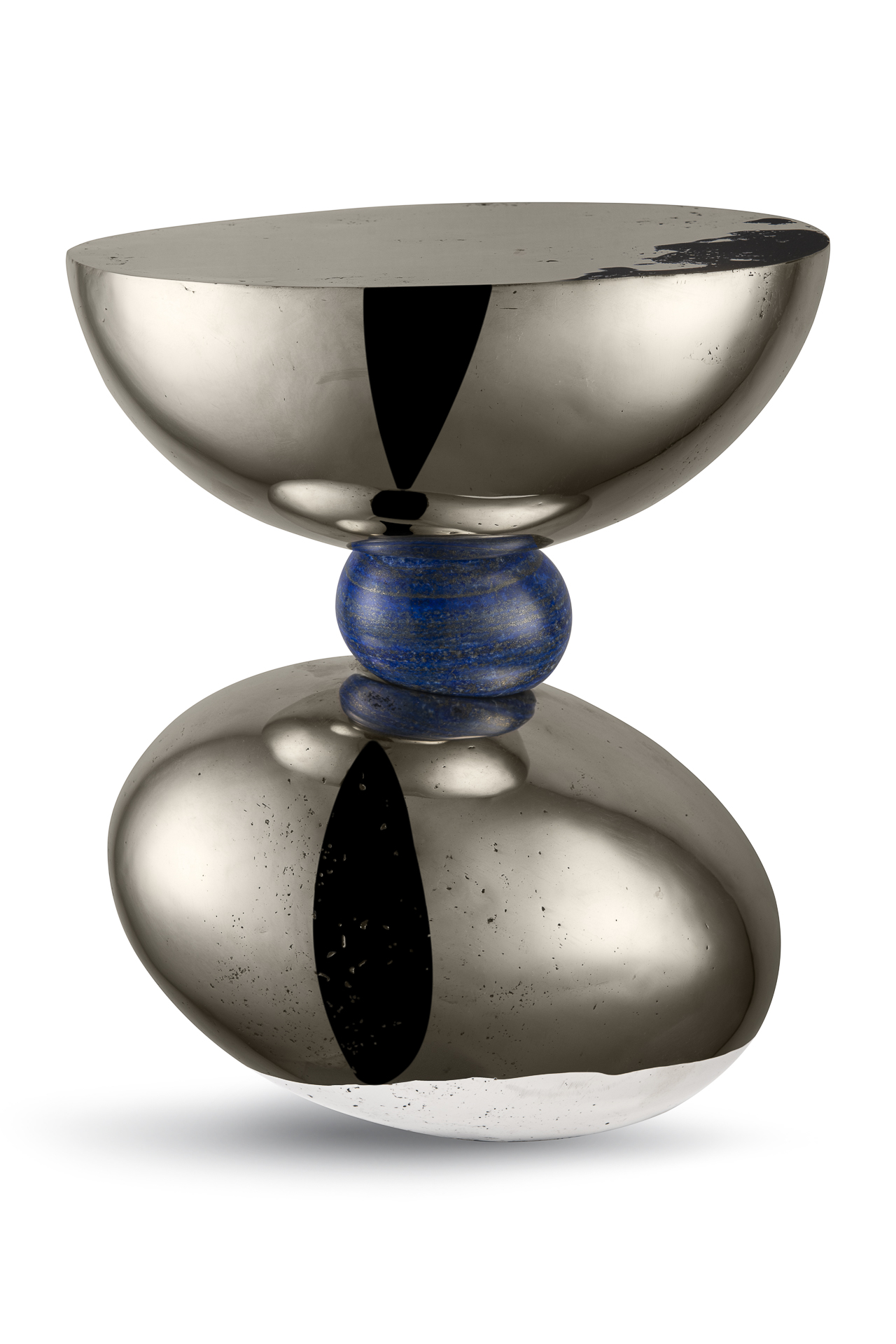 Rooshad Shroff: This latest collection is, in many ways, a radical shift away from what we have done previously. While we have stayed true to natural materials and the celebration of the hand in terms of making techniques, I really wanted to push the idea of structure. I wanted to play with it and push it to it’s limit. With some of the pieces we have stacked blocks of onyx on top of each other like pebbles in a precarious form so that it looks like it is in a state of unrest. So, it seems unstable or delicate but is actually both stable and functional. We have coffee tables with massive cantilevers, five foot long overhangs supported on a tiny pebble. The collection also includes chairs and sofas which is my first foray into upholstered pieces. The chair has an underbelly of cast white bronze with white bronze legs and a little tail of white onyx at the rear end tying into the materials palette. And they are all upholstered in cashmere.