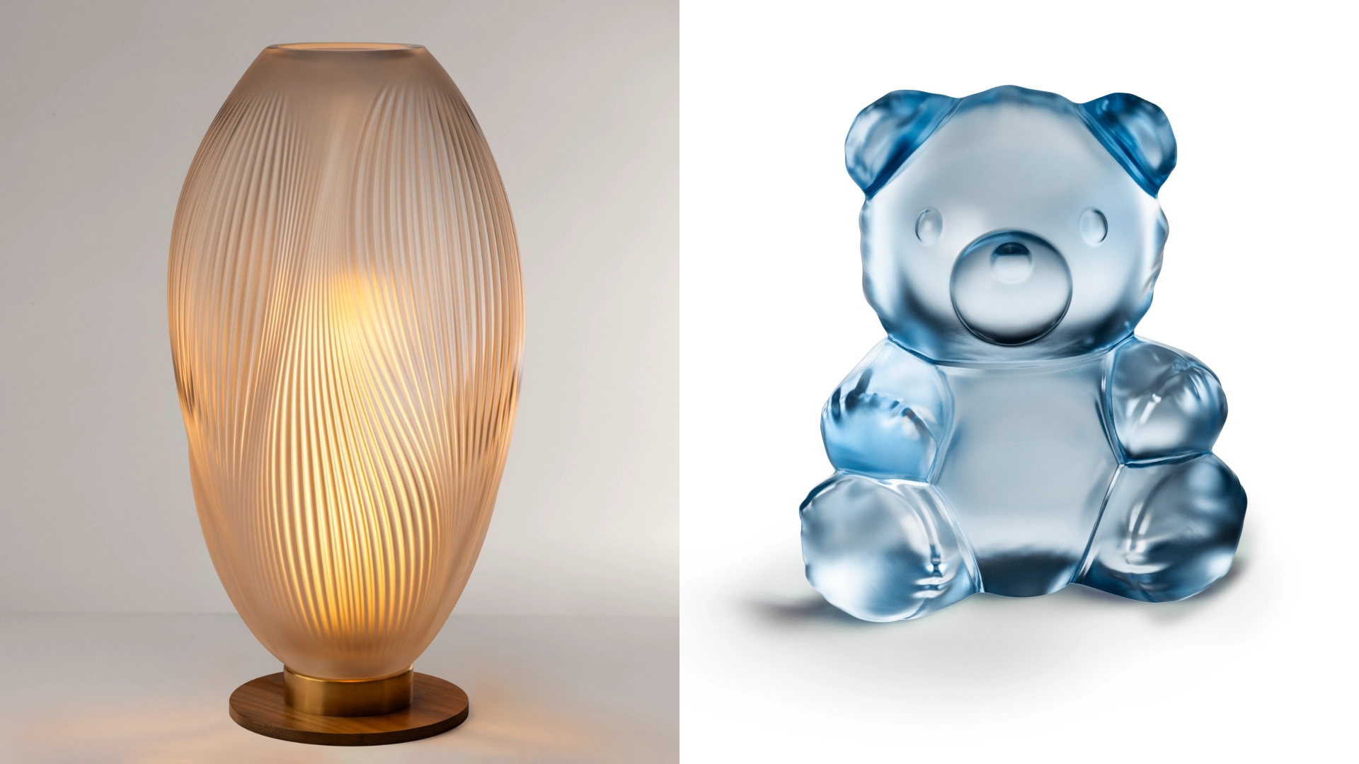 Larminaux also introduced ‘Teddy Air’, his own personal experiment. These sweet-coloured bear sculptures appear inflated, like balloons, with pink and blue iridescent lusters suggesting a metallic sheen. ‘[They embrace] tenderness and nostalgia, while [other collections] reconnect with Lalique’s naturalistic heritage,’ says the creative director. ‘Both are legitimate expressions of the maison. Lalique has always oscillated between audacity and poetry.’