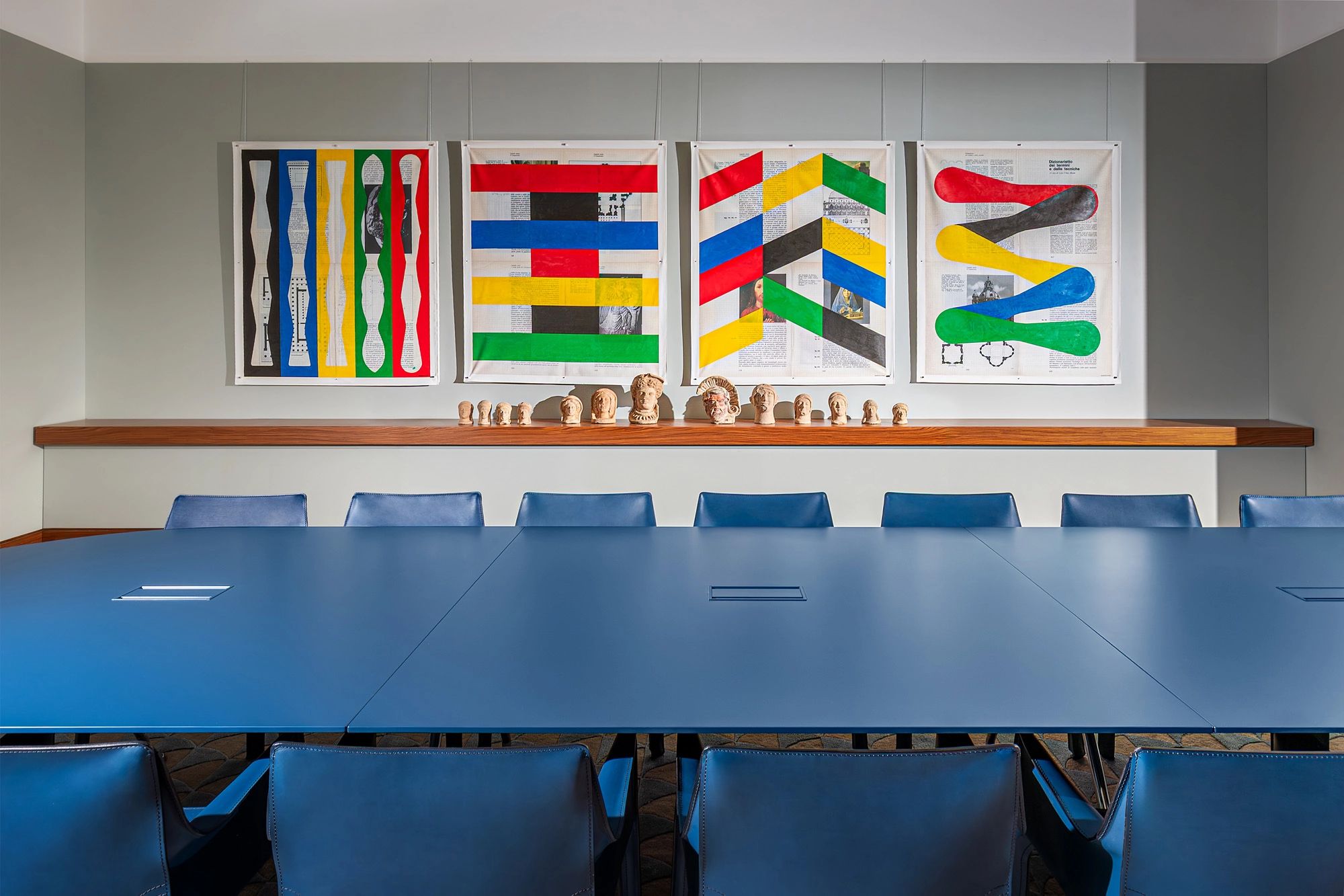 This quadriptych now hangs in the office meeting room, accompanied by a series of Etruscan sculptures on loan from Rome’s National Etruscan Museum at Villa Giulia (more Etruscan objects can be found elsewhere in the space, including in the waiting room).