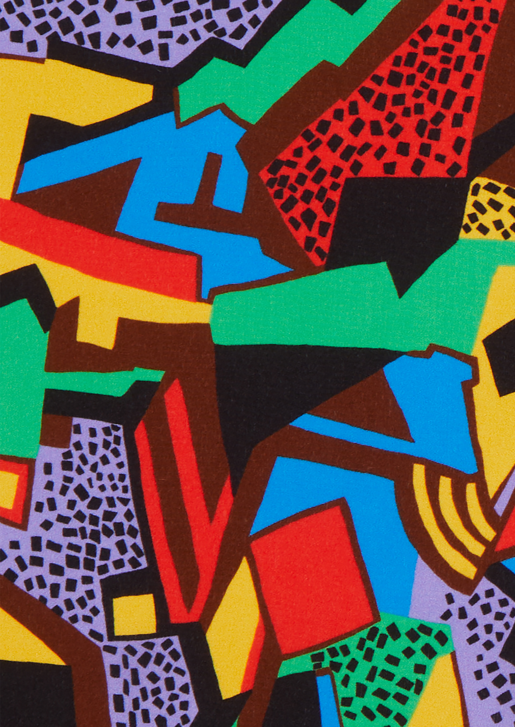 Liberty has been creating fabrics since the 1880s, so consulting its archive was a vital part of the design process. Liberty’s archivist helped the team navigate more than 50,000 historic designs to find relevant touchpoints, alighting on the 1960s collections of former Liberty design director Bernard Nevill. Two of his ranges, Tango and Jazz, were inspired by Vorticism, the British art movement that grew out of Futurism. ‘A whole new world of knowledge opened up,’ says Dunkley. ‘And we were really excited that we had found the British version, because we always want a connection of how something is related to Liberty.’