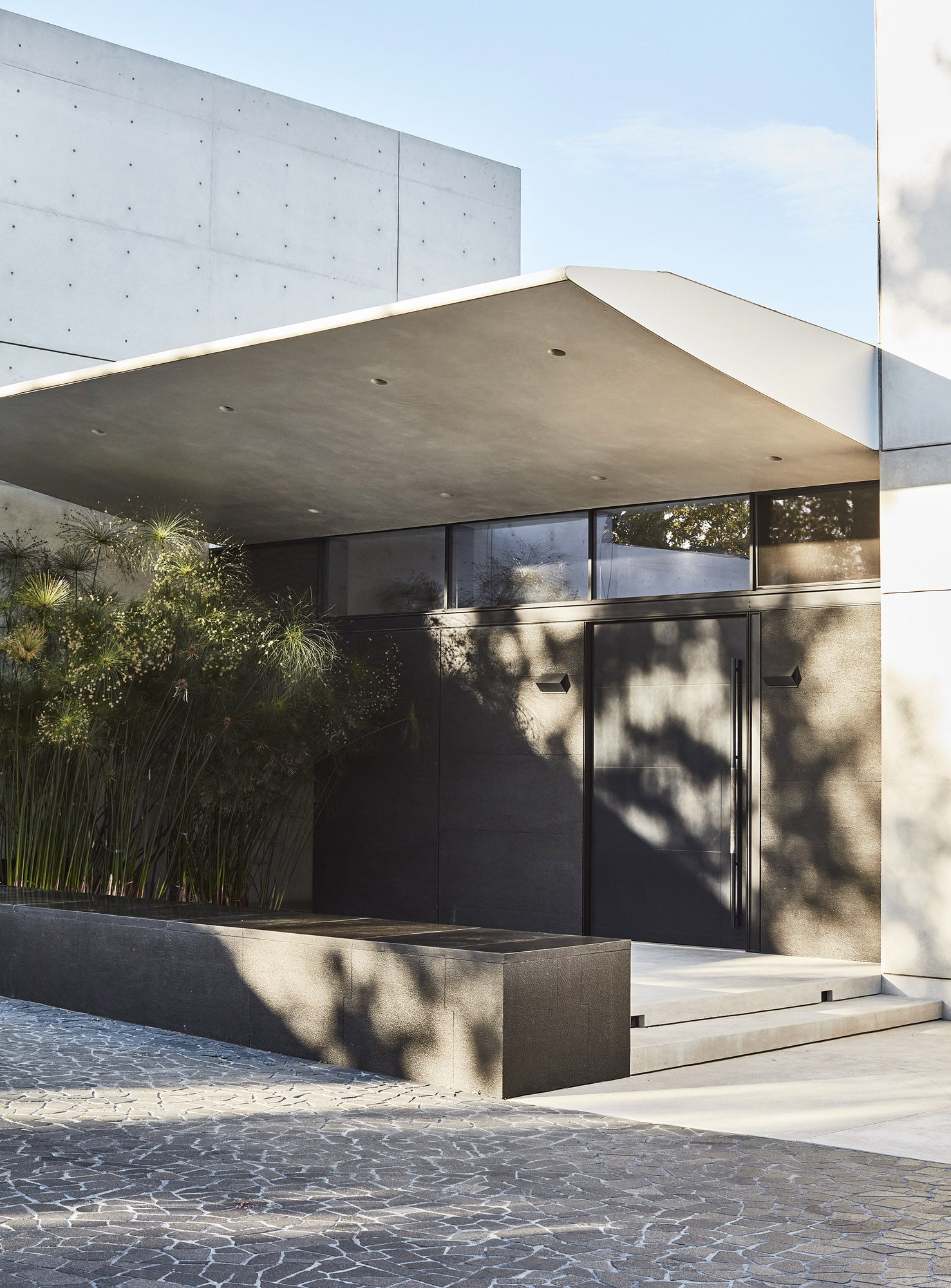 Built from the ground up from board-formed concrete and hand-trowelled plaster, the house also boasts a pool pavilion, guest house and landscaped garden
