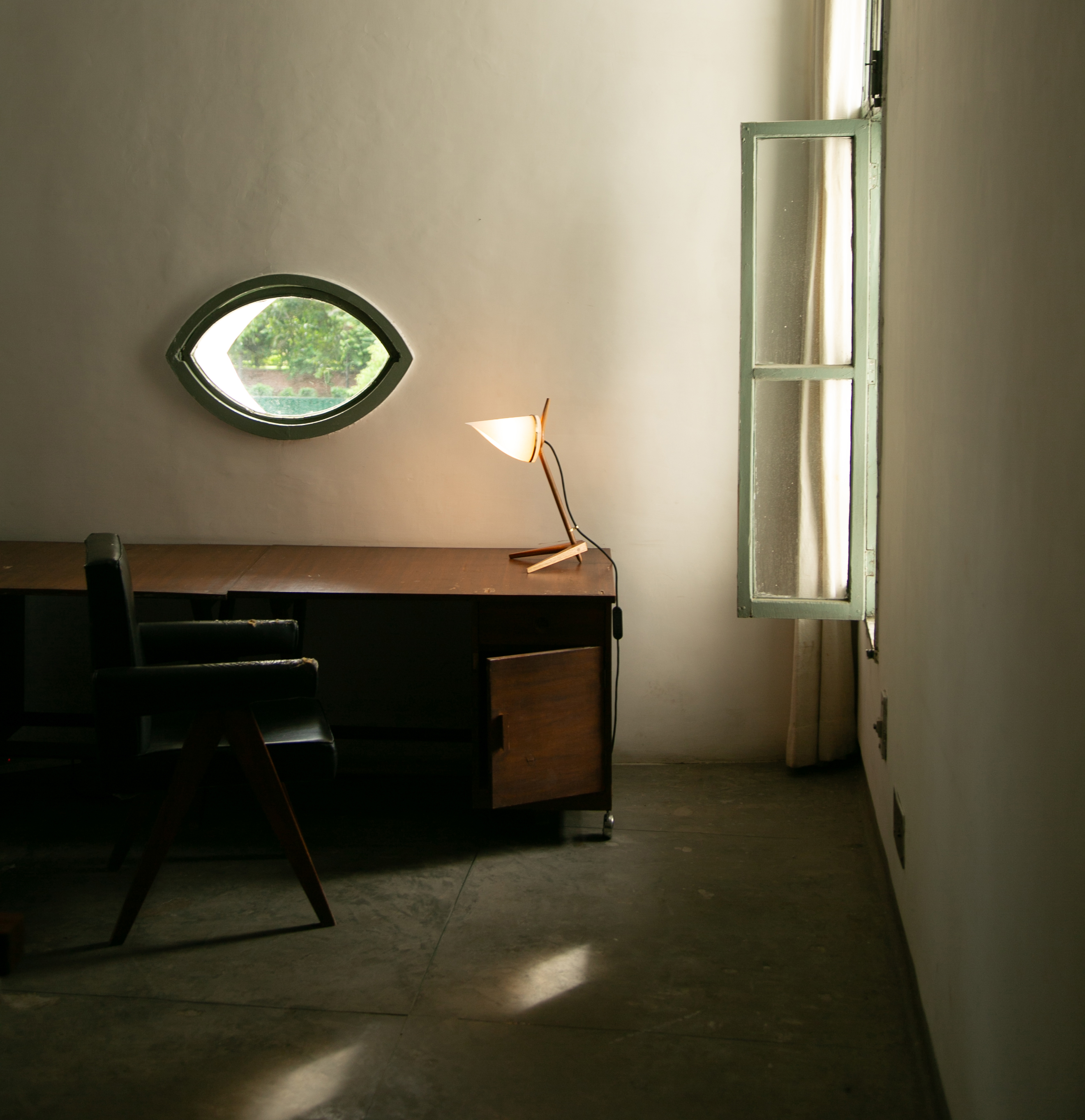Five months later, my bags were packed to the brim with lamp components, cameras, and equipment as I set off once again from the UK to India. While Jeanneret’s house in Chandigarh was the ultimate destination, my first stop was Le Corbusier’s ATMA building in Ahmedabad. Here, I joined a Wallpaper* shoot with Nilufar Gallery, featuring the ‘Noveconi’ chandelier [Joe Armitage's design, inspired by Edward's ‘Armitage’ lamp].