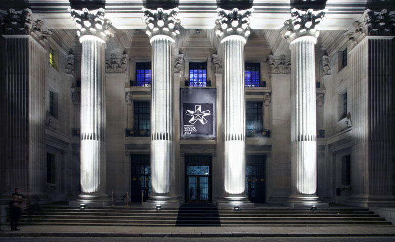 The entrance to the Wallpaper* Design Awards party at 10 Trinity Square, a grand Beaux-Arts building originally designed by Sir Edwin Cooper in 1912 in the heart of London.