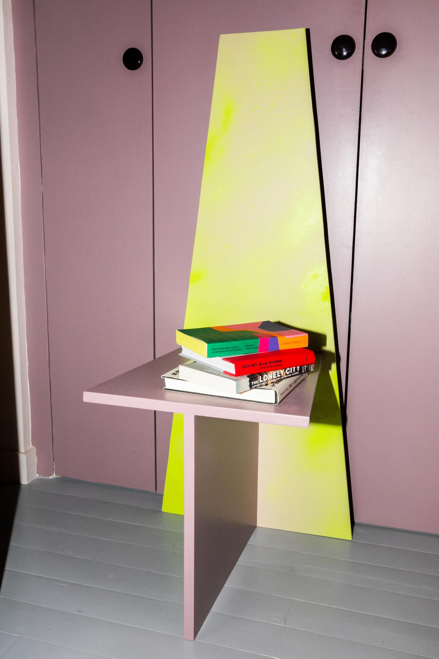 ‘Before I started designing the apartment, I tested a few concepts by designing smaller objects. Although simpler to call them chairs, I prefer to think of them as a series of prototypes that could be used for seating, such as bedside tables, shelves or plant stands,’ he reveals. ‘Working on these smaller scale objects allowed me to [define the] design, shapes, materials and color variations that determined the language in the apartment. This process was essential in making some of the early design decisions, including some of the key furniture pieces, such as bespoke window shutters, custom built-in storage and dining table.’