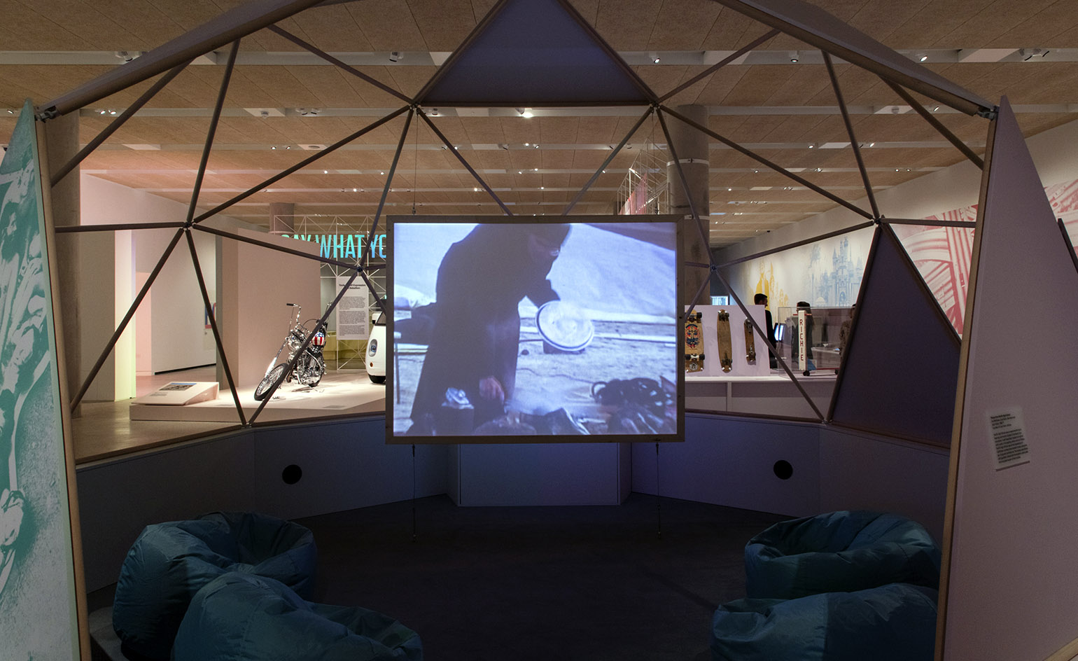 A display shows the evolution of the skateboard deck, from the 1950s through to the noughties