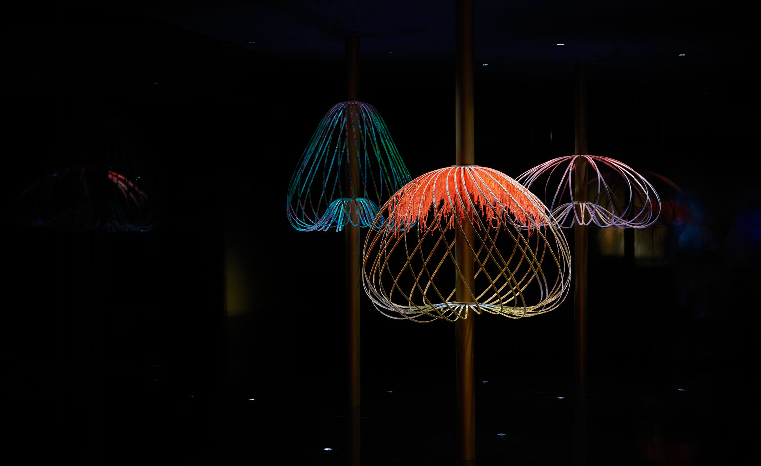 Textile artist and designer Elaine Ng’s fabric-based experiment comes in the shape of a moving installation inspired by Sundew, an intriguing carnivorous plant. DEWs is an interactive installation of embroidered crystal sculptures, which move according to sound and movement around them. ‘My key mission was to employ crystal as a raw material and not a decorative feature,’ the designer explains. She combined her textile expertise with the craft abilities of the Wattens’ technician and craftsmen. ‘The technology and knowledge I was given through the trip was immense,’ she mentions, recalling her introduction to the Wattens facilities, ‘it has changed my mind about the way to design and apply crystal.’ Ng worked with six different fabricators on various embroidery methods using cane, PVC and textile, going as far as using crystal as a base to embroider onto.