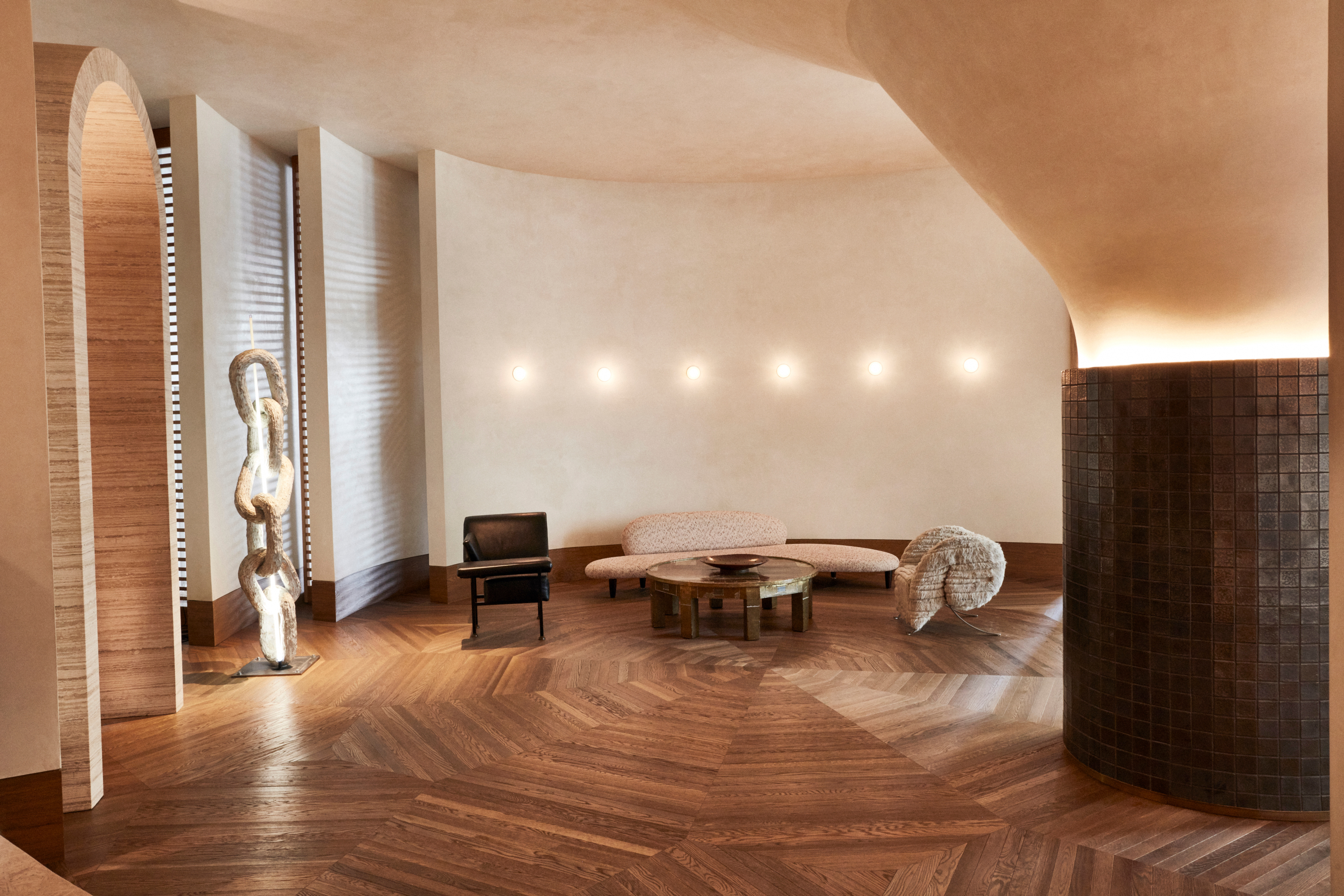 You know you’re sitting in a Wearstler-designed hotel when you think you’re reclining in your most stylish friend’s living room. ‘I look at hotel design and residential design through the same lens,’ she says of her propensity to create inviting, considered spaces, layered with texture and points of interest, much like a home assembled over years. ‘A hotel can be the epicentre of where locals hang out,’ she points out, as is the case with the Santa Monica Proper (‘a sexy project’), where she often holds meetings or relaxes. The hotel, which opened in 2019, inspired her latest ‘family’ of furniture, Morro, which hints at 1970s ‘monolithic’ French and Italian furniture. ‘The collection was super spontaneous. We needed a table of specific proportions for the Santa Monica Proper; it needed to be round, to feel organic and textural and very bulbous, like a shell. It looked so good when we had it fabricated that we did a side table, then something else, and something else.’