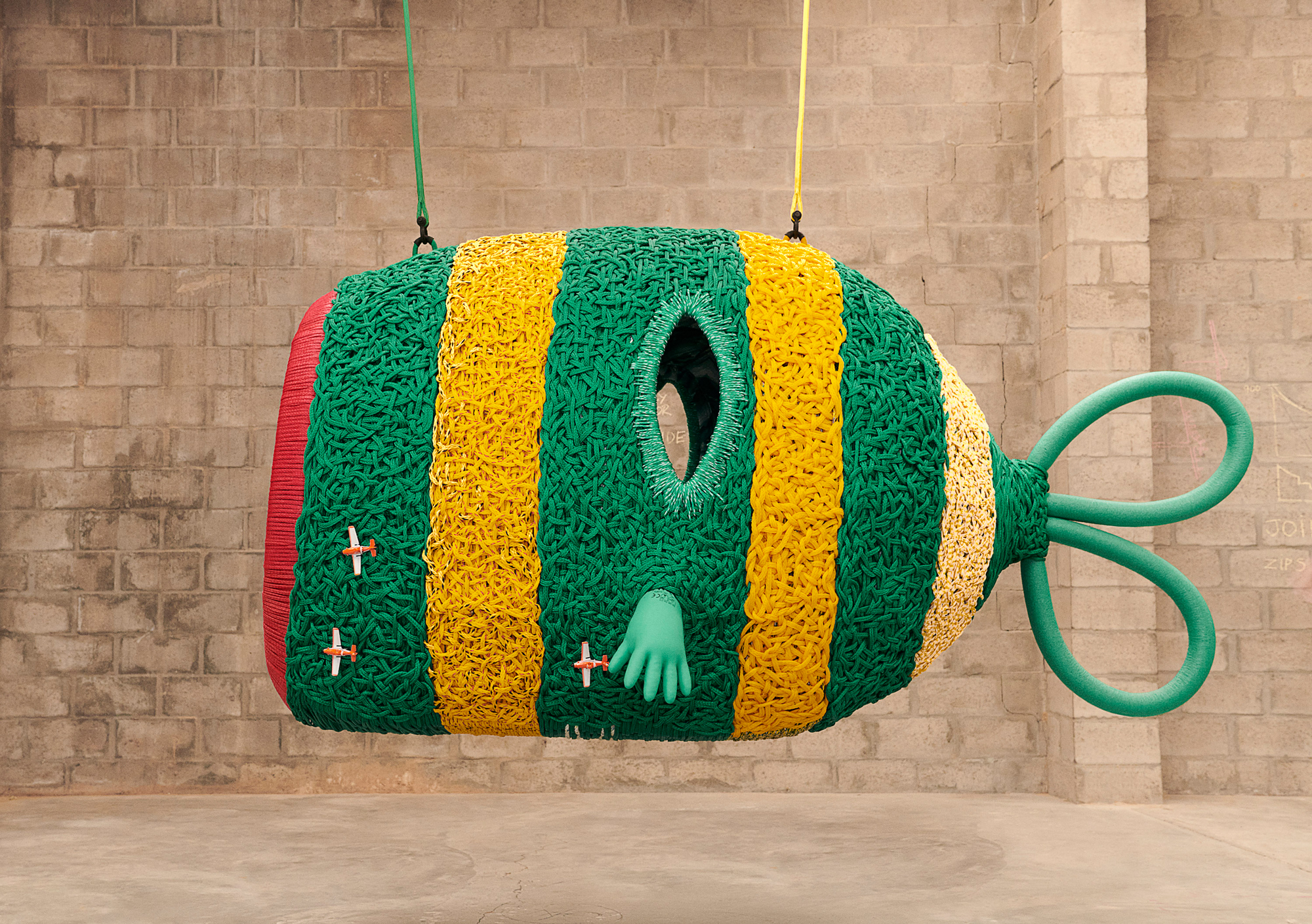 Charming at first sight, Hefer’s creatures are less so on closer inspection: a giant octopus (at 14m wide and 3.6m tall, Hefer's largest piece to date) is made from thousands of felt cigarette butts; a cute multicoloured fish turns out to be built out of ghost nets and marine rope; and a blowfish’s spikes are revealed as 120 crocheted straws. Equally striking are Flat White, a reminder of the waste generated by takeaway food packaging, and Q-Tip, a part-earbud, part-hammerhead shark creature.