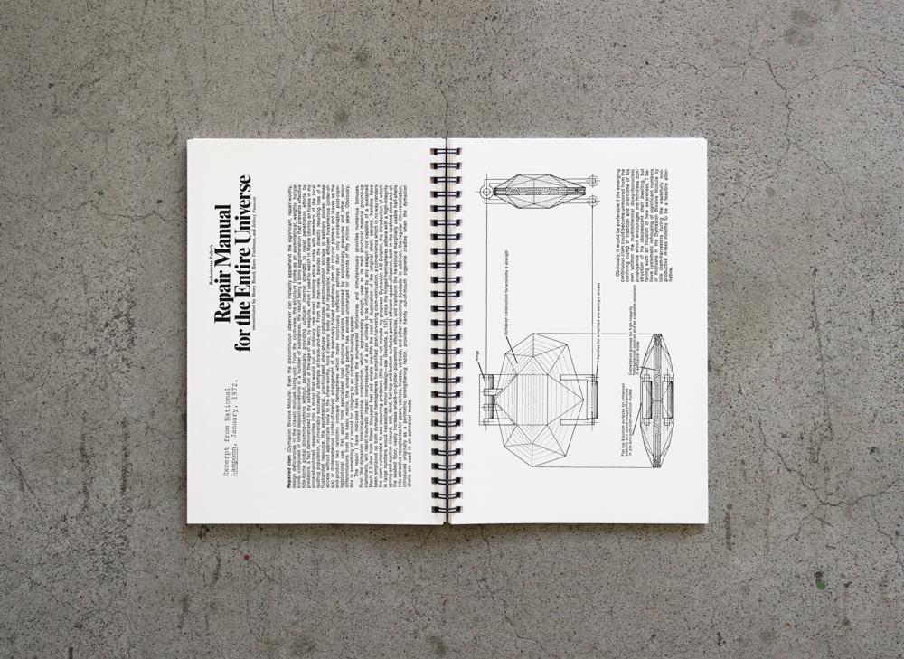 Presented in a workable, stationery-chic, ring binder edition with mostly handwritten recipes, pen-illustrated visuals and a cover graphic that presents a strawberry (or tomato?) rendered in Fuller’s groundbreaking geodesic dome configuration, the book is a heart-warming tribute to the genius of a bonafide design hero.