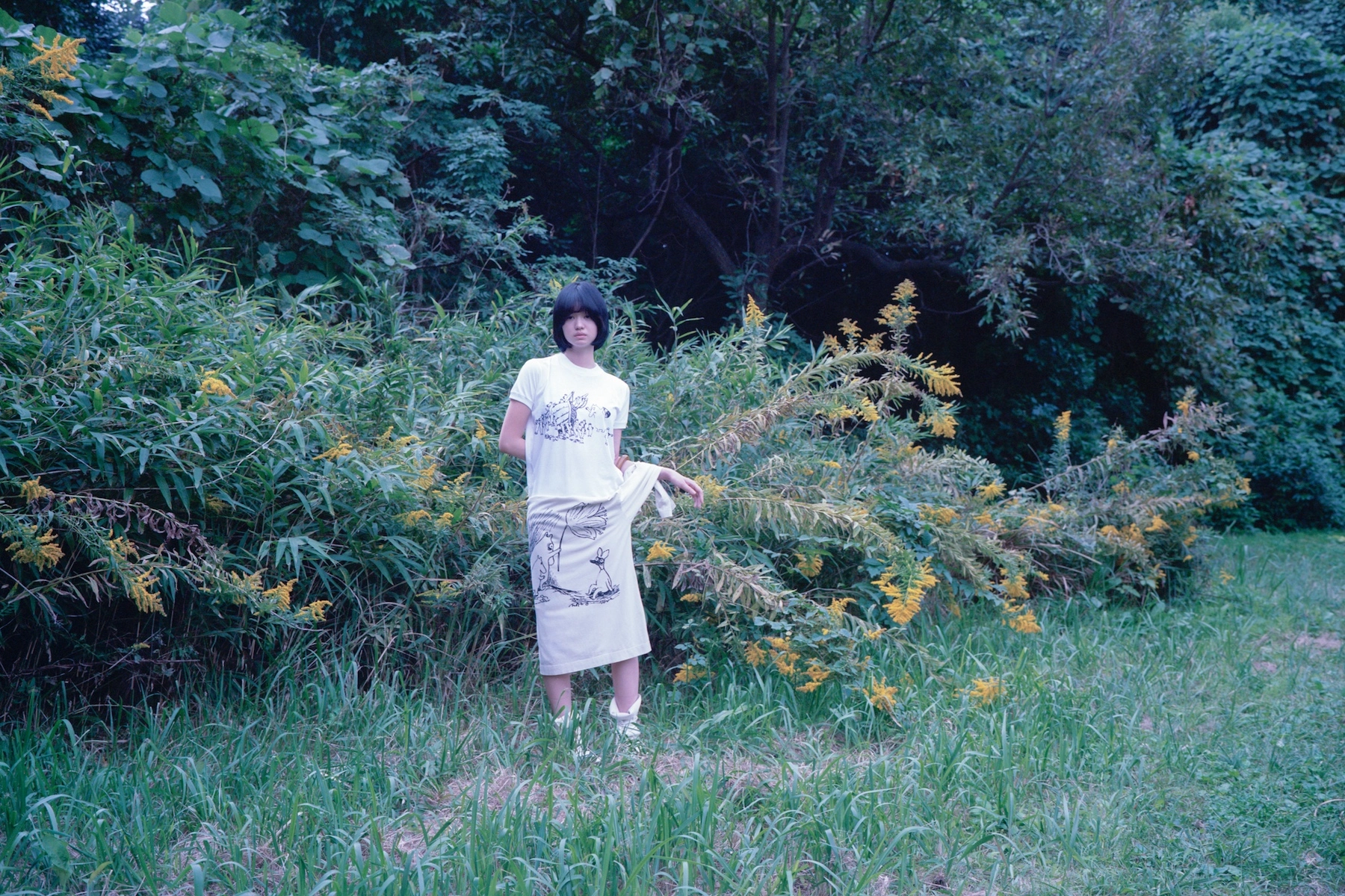 An accompanying campaign is shot by Japanese photographer Takashi Homma, who is best known for his 1998 work Tokyo Suburbia, a series of images taken on the then-forgotten outskirts of the city (the photo book is rare and much-coveted). ‘He shot the series in a park near his home in Tokyo, capturing this beautiful light, and something emotionally poignant and also strong,’ says Thornefors, who noted he wanted to show that you could look still look ‘sexy’ in a Moomins T-shirt.