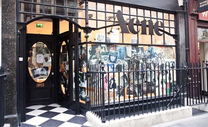The façade In readiness for its unveiling to the public, the new Acne Studio on Dover Street's windows are covered in a collage of pages from the Acne Paper, the brand's bi-annual magazine - just one of the collective's many different creative ventures. The store takes over four floors of what was once a house before it became a gallery. 'Ever since we formed Acne, we always talked about a house with different levels of creativity to house all of our artistic endeavours, says Jonny Johansson. 'We have the house in Stockholm - a large old bank once owned by the Wallenberg family - and to be able to recreate that in Mayfair was one of my absolute dreams.'