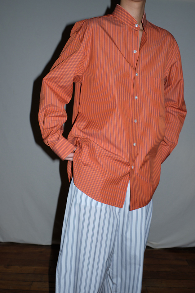 Handmade poplin Mao shirt with fringed collar, by Salvatore Piccolo and Crista Seya