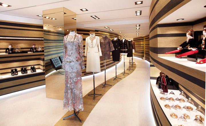 Cosying up to the brand's existing store on Boulevard de la Croisette, the 300 m² unit comes complete with indulgences that include golden mosaic-tiled walls, a dedicated make-up bar, nail bar, and as a nod to the impending festival - an exhibition space of Chanel gowns and suits previously worn by actors, together with a private lounge on the first floor with views of the red carpet leading up to the Palais des Festivals.
