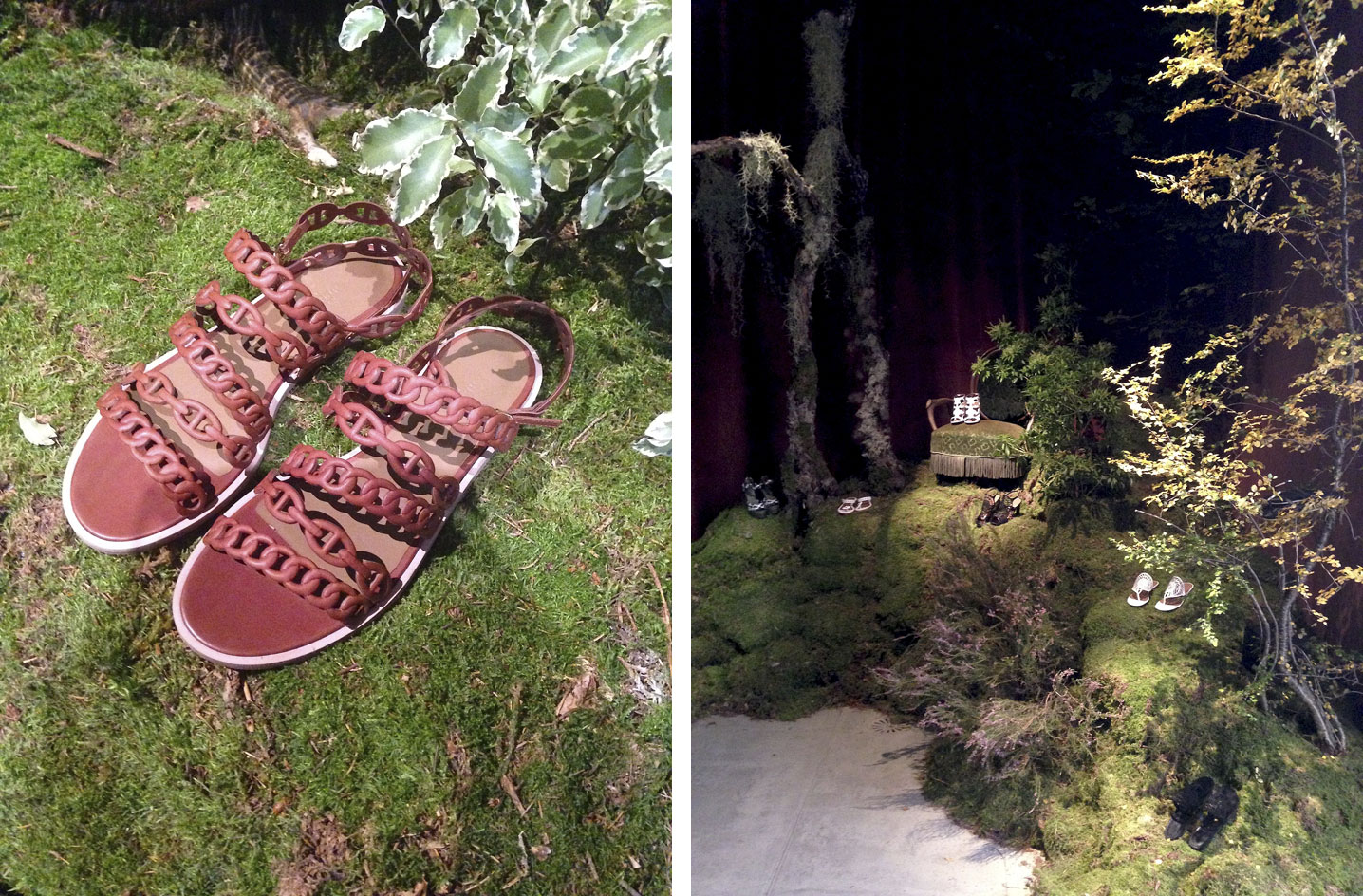 Hermès: Pierre Hardy was inspired by Hermès' 'Balcon du Guadalquivir' porcelain pattern and his chain link jewellery for his shoe collection that was dominated by patterned, laser-cut leather sandals