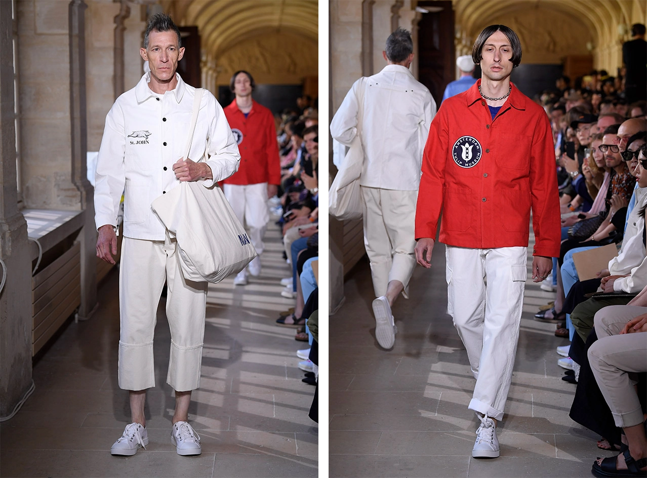 Best in show: Watanabe has reviewed and renewed workwear since launching his line in 1992. He began by making patterns for Rei Kawakubo at Comme des Garçons in the early 1980s and, to this day, his approach is one of slicing open archetypal clothes and remixing their heritage. For S/S 2020, field jackets and fisherman vests were cut into the front of tailored jackets. A Raglan bomber was set into a shirt; a Levis’s denim jacket had a classic Oxford shirt back. Logos for Fergus Henderson’s iconic London restaurant St John, the Amsterdam Tulip Museum and Copenhagen fishery Fiskerikajen were printed onto bags and jackets. Watanabe embraced the independent voices shaping culture today, featuring the front covers of arts quarterly Real Review and New York-based paper Civilization as prints on large canvas shoulder bags. This was canny and cool.