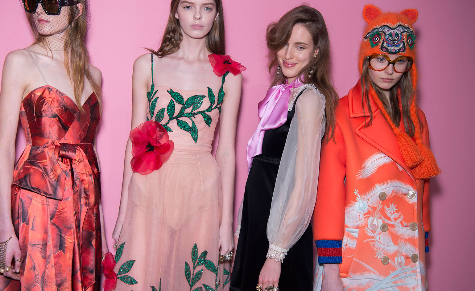 Mood board: Alessandro Michele's press notes at Gucci referenced ‘Rhizomatic Thinking’, which took its weird roots from plants that grow sideways, like weeds. In a nutshell, they possess neither centre nor orientation. For that matter, neither did the Gucci show that yanked us abruptly back and forth from the languid elegance of the 1930s to the gritty, bespectacled awkwardness of the 1970s while zooming right through the hard shouldered, skin tight, leather linebacker look from the skanky 1980s, all the while scooping on Michele's signature piles of bankable, highly individualistic accessories.
