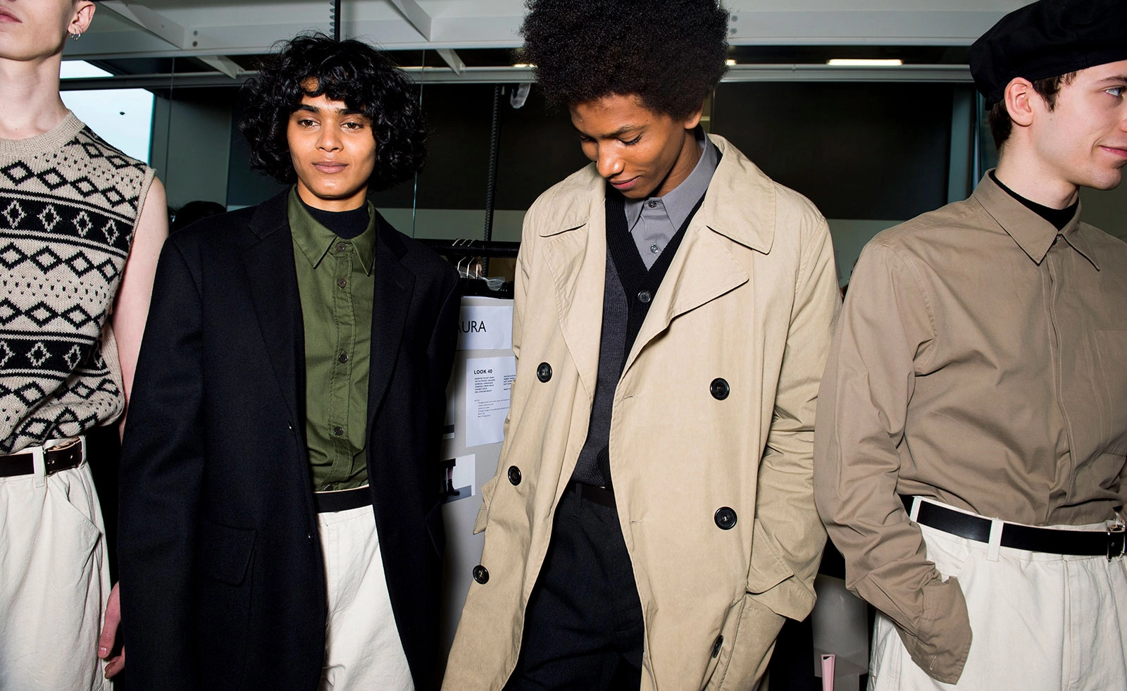 Mood board: on the British fashion scene Margaret Howell has become a well known stalwart in expertly crafted utility dressing, building on workwear codes, organic tones and a touch of the school boy or girl in her repertoire. But it was new proportions and prints that got front rowers talking as they filed out of the brand’s regular show space at Rambert’s headquarters. Amongst well loved men’s and women’s classics in organic hues, like trenchcoats, mélange knitwear, plaid shirts and tweed tailoring, there came paisley prints in antique shades of pink, ochre and blue, baggy drop crotch trousers and outerwear in new proportions.